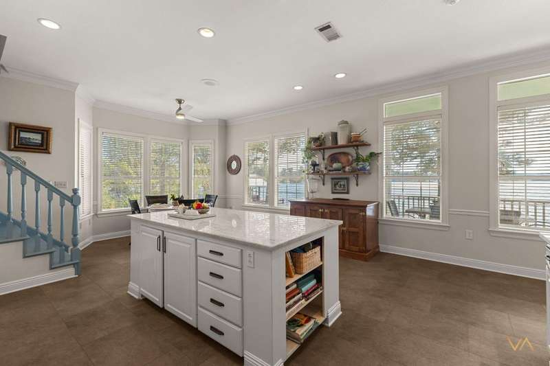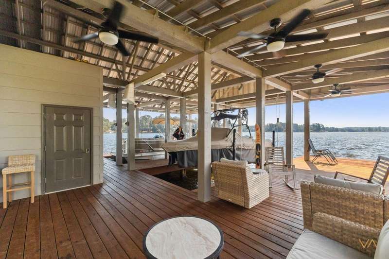 Discover this stunning lakeside home! This spacious 5-bedroom, 5 1/2-bath residence has ample room for the entire family. The kitchen features custom cabinetry, a beautifully crafted vent hood, granite countertops, and a stylish tile backsplash that echoes the serene lake views. The primary suite offers a relaxing retreat, perfect for unwinding after a long day at work. You'll love the newly installed tile shower in the primary bath. Step out from the great room onto the large back porch, where you can take in the beautiful lake view or simply meditate while the gentle breeze sweeps across the water. Looking for some fun? Head down to the boathouse, where you can enjoy the water by boat or just dip your feet in for a refreshing splash! 17 Snug Harbor has so much to offer at an incredible value. Call today for your private showing!