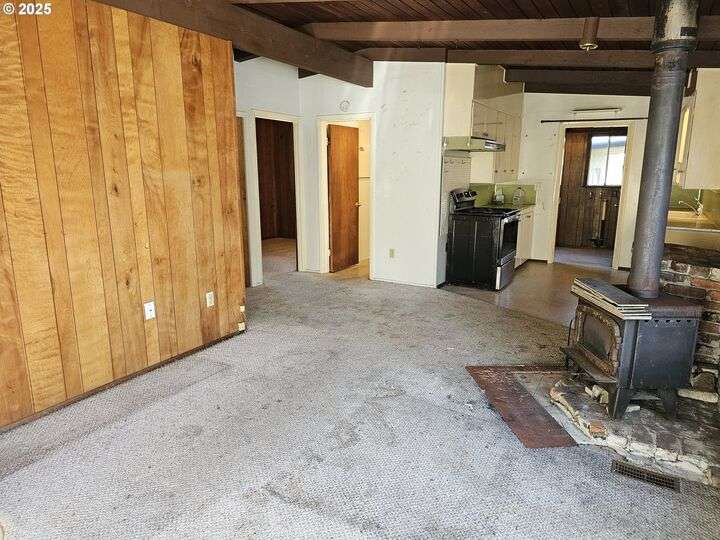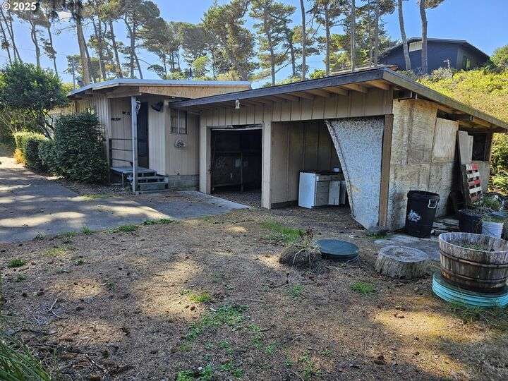 Charming and cozy coastal retreat in the heart of Florence’s beach area. This 2-bedroom, 1-bath home is full of character with wood beam ceilings and a warm, inviting feel. A brand-new membrane roof was installed in June 2025, offering peace of mind for years to come. Inside, you’ll find a laundry room with exterior entry, plus double carports at the rear for easy parking. Nestled in a private setting, this quaint home is ready for your imagination and updates — a fixer with endless potential. Perfect for those looking to create their dream coastal getaway, full-time residence, or investment in Florence’s sought-after beachside community.