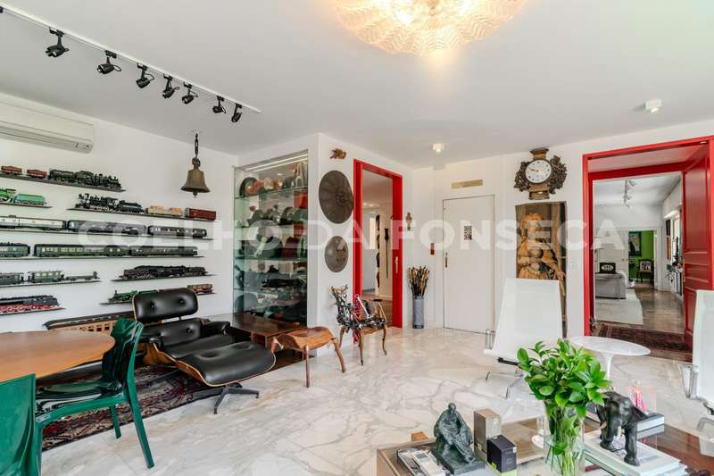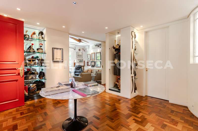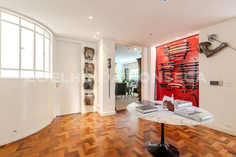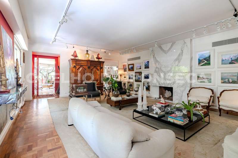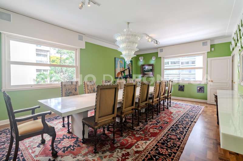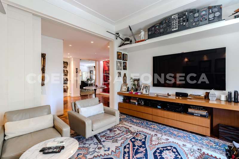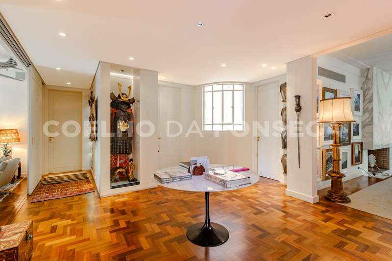 Apartamento totalmente reformado, com pé direito alto, em edifício ícone dos anos 50 em uma das localizações mais especiais de Higienópolis. São quatro amplas salas. Hall de entrada com janelão curvo, living principal com lareira, sala de jantar, sala de TV, hall de circulação com lavabo e galeria com acesso à área intima, com destaque à suíte master com dois closets e banheira. Roupeiros espaçosos, cozinha planejada com sala de almoço e área de serviço com duas dependências para funcionárias. Agende sua visita!