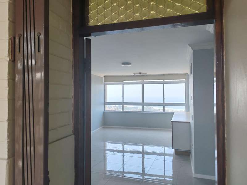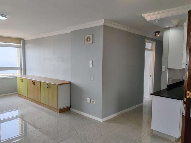 Wake up to sunrise and view the waves breaking on the shore from this exclusive 2 bedroom apartment with an en suite and family bathroom.. The lounge and both bedrooms have excellent 180 degree views of the ocean with fantastic views from Durban to Umhlanga . This apartment has just been fully renovated and awaits a new owner to move in. The kitchen is fitted with an undercover oven and with a glass top hob fitted on a beautiful quartz stone . Facilities have been created for a fridge and a dishwasher with the required connections and plumbing in the kitchen. A new geyser has also been installed. The apartment comes with undercover parking . The complex has electrified security fencing and gates operated by remote control and or cell phone dial in for codes to open the gates.. There is also a communal sparkling swimming pool set in the garden. The complex security has just been enhanced by facial recognition entry. The complex is close to major shopping centers , the beach and the business hubs of Umhlanga and Durban