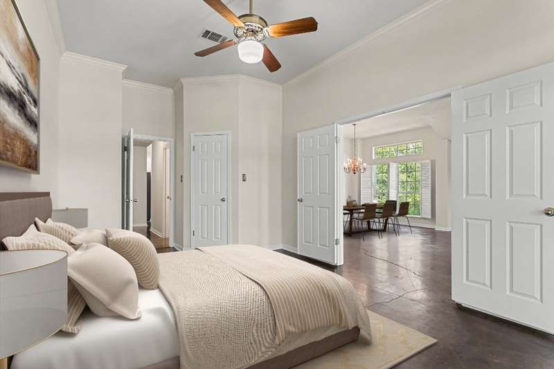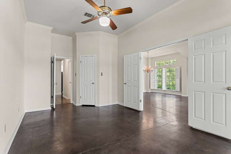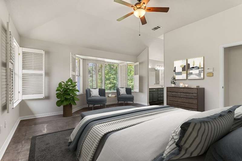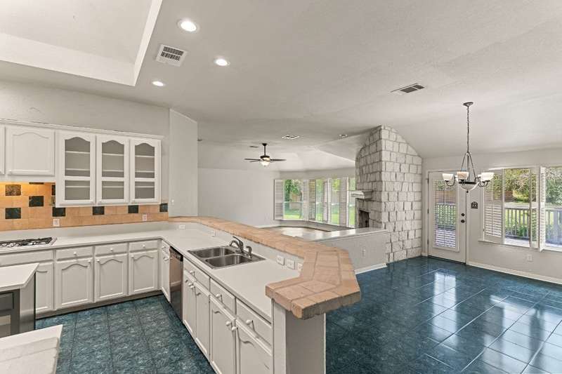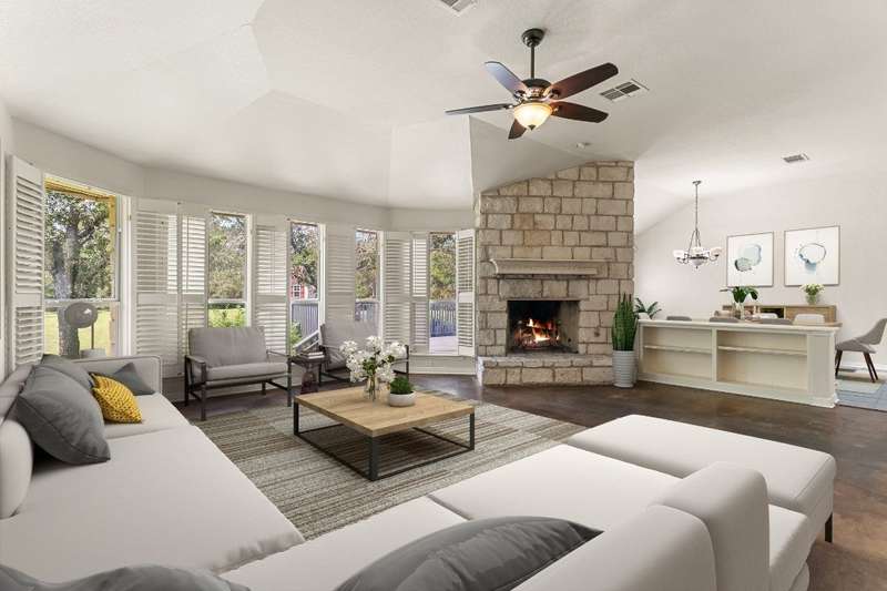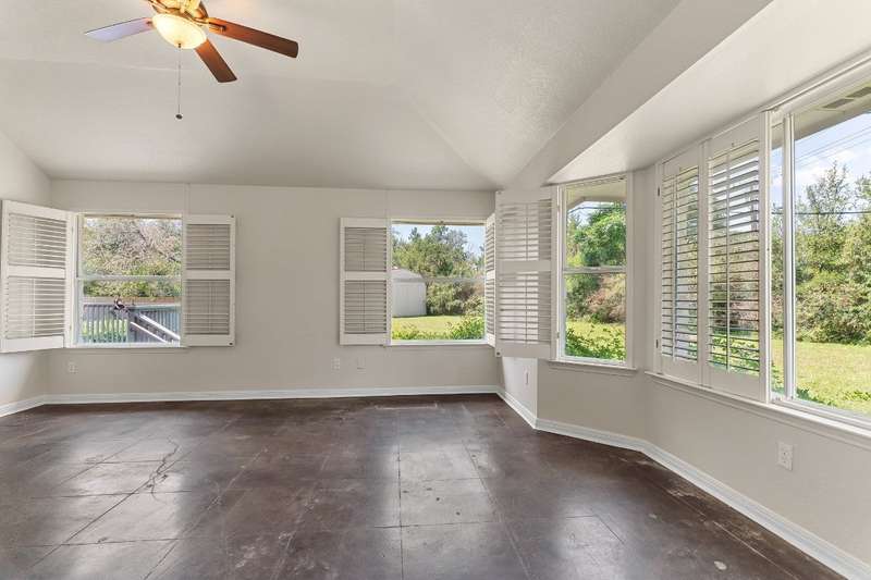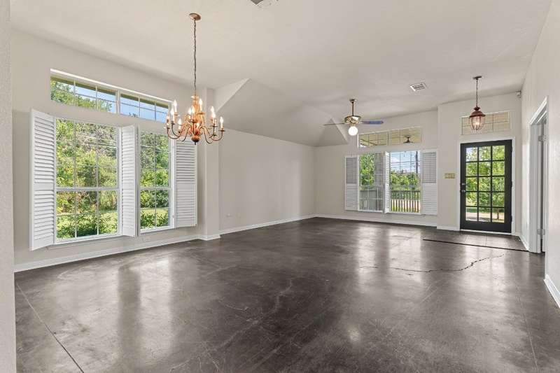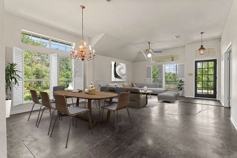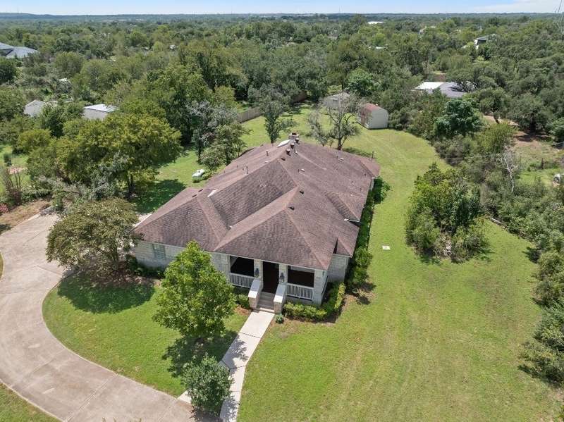 Rare opportunity to enjoy country living inside the Austin city limits. Nestled in the heart of South Austin, this exquisite custom-built, single story, home was thoughtfully designed to flow seamlessly and offers a blend of modern convenience and timeless elegance. The expansive 1.4 acre private lot is surrounded by thicket and trees with plenty of open outdoor space for activities, gardening or simply relaxing. The home features four spacious bedrooms and three full baths. The large primary bedroom features an ensuite bathroom with his and hers walk-in closets, a double vanity, garden tub and separate shower. Conveniently located off the primary suite is a dedicated home office providing a quiet space for work or study. The front bedroom is a versatile space that can be used as a guest room, workout room or fit any other need. A huge skylight floods the kitchen with natural light making it a bright and welcoming space for culinary adventures and family gatherings. Just off the kitchen is a casual dining area that is open to the family room. A larger formal dining area flows into the front living room at the main entrance of the home. The interior highlights include scored concrete and tile flooring throughout. No carpet means easy maintenance and a sleek look. High ceilings bring a light and airy feel. Stylish plantation shutters throughout the home add an extra touch of elegance and privacy. Cozy up to the wood-burning fireplace in family room, perfect for those cooler Texas evenings. The oversized 3 car garage has plenty of room for vehicles and toys, storage or workspace. The barn style storage shed in the backyard conveys. Second shed is excluded. Convenient access to Hwy 290 and Mopac, and just North of William Cannon...perfectly situated just minutes to popular restaurants, shopping and entertainment venues. A short drive to downtown, you'll enjoy the vibrant city life while relishing the tranquility of this serene pocket neighborhood.
