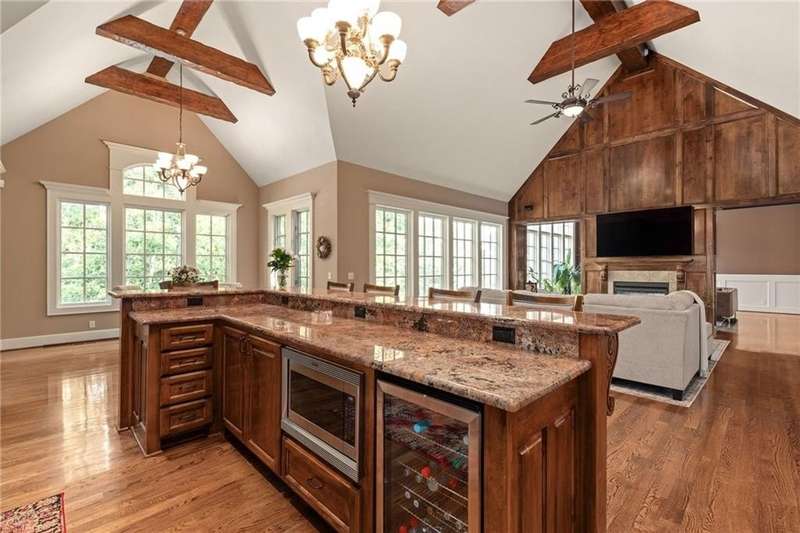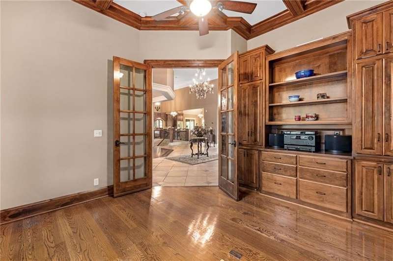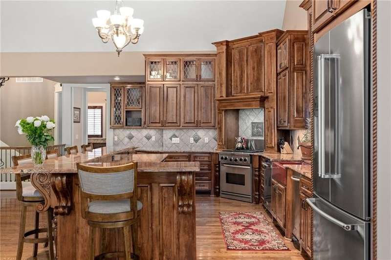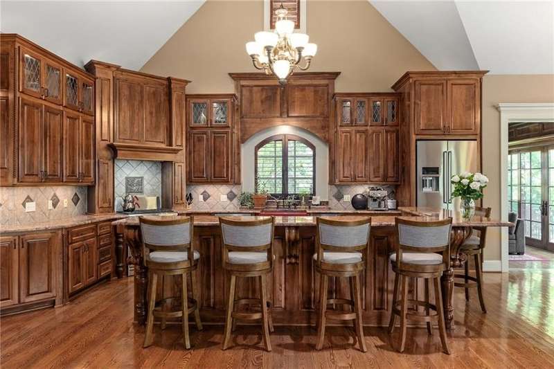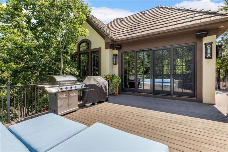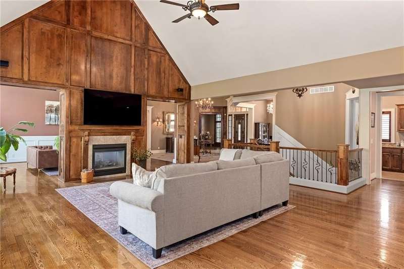 Experience the height of luxury living in this stunning custom-built home nestled in the heart of Leawood. With rich hardwood and marble floors throughout, this reverse 1.5-story residence blends timeless sophistication with modern design. The open-concept layout welcomes you with soaring ceilings, custom cabinetry and woodwork, and abundant natural light—perfect for both grand entertaining and everyday living. At the heart of the home, the chef’s kitchen boasts top-of-the-line appliances, a gas range, and a beautifully functional design made for both cooking and gathering. Retreat to the private primary suite, a true sanctuary featuring dual walk-in closets and a spa-like en-suite bath. Additional spaces elevate daily living, including a dedicated workout room, custom sauna, and a refined den/home office with French doors. A newly added Four Seasons room extends seamlessly to the outdoors, creating a year-round connection to the breathtaking backyard. Step outside to your personal resort: a sparkling in-ground pool with cascading waterfalls, a built-in grill in the outdoor kitchen area, serene landscaping, and expansive deck—an entertainer’s dream. Two fireplaces add warmth and charm indoors, while high-end finishes throughout make this home truly turnkey. This is more than a house—it’s a lifestyle. Don’t miss your chance to own one of Leawood’s finest luxury properties. *Please Submit buyer's mortgage preapproval letter OR Proof of funds to listing agent prior to showing*