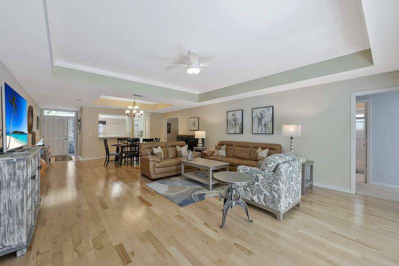 Step into a lifestyle of comfort and community in Tra Vigne - a private, beautifully maintained enclave of just 77 coach homes tucked within the sought-after Vineyards community. This rarely available, first-floor end unit offers the privacy and feel of a single-family home, with the ease and convenience of a lock-and-leave lifestyle. From the moment you enter, the wide-open layout welcomes you with rich hardwood floors, coffered ceilings, and walls of natural light that enhance the home's airy, inviting ambiance. With 3 spacious bedrooms, 2.5 baths, a versatile den, and a one-car garage, this thoughtfully designed plan provides for both everyday living and effortless entertaining. The expansive lanai - your private outdoor sanctuary, offers serenity as well as hurricane protection, perfect for morning coffee or relaxing after a day at the beach. Residents of Tra Vigne enjoy quiet, tree-lined streets, a short stroll to one of four sparkling pools, and ample guest parking - all within a gated, secure setting. Just outside your door, you'll find Naples' best shopping, dining, and entertainment minutes away. For those looking to elevate their lifestyle even further, Vineyards Country Club offers optional memberships to a world-class wellness center and spa, two championship golf courses, tennis, pickleball, bocce, and a year-round calendar of social events that create connections and memories. Don't settle for just another home - discover a place where every day feels like a vacation. Welcome and cheers to new beginnings!