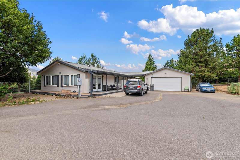 Two separate homes on one fully fenced 1.15 acre lot - peaceful privacy meets convenience in Sunnyslope! Property features a charming 4 bed 2.25 bath brick Tudor; and a 3 bedroom, 2 full bath 1997 Marlette home generating rental income. Each has its own drive, garage, septic, and yard. RV parking with water and waste hookups plus plenty of room for parking all your toys. Enjoy an in-ground pool with a new pump, mature trees, berries, and beautiful landscaping with irrigation shares. Full features and updates list available. Surrounded by nature and minutes from town, this property blends country serenity with easy access to all the region offers.