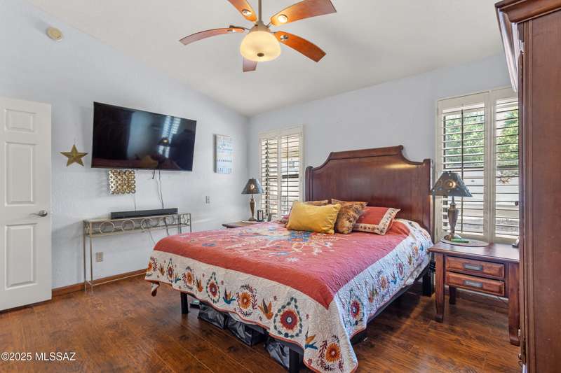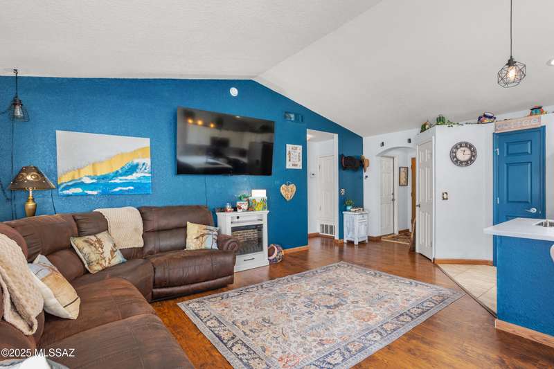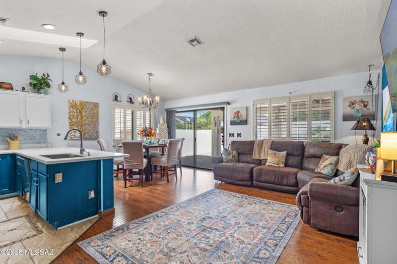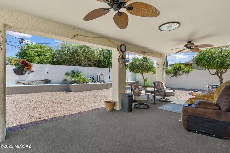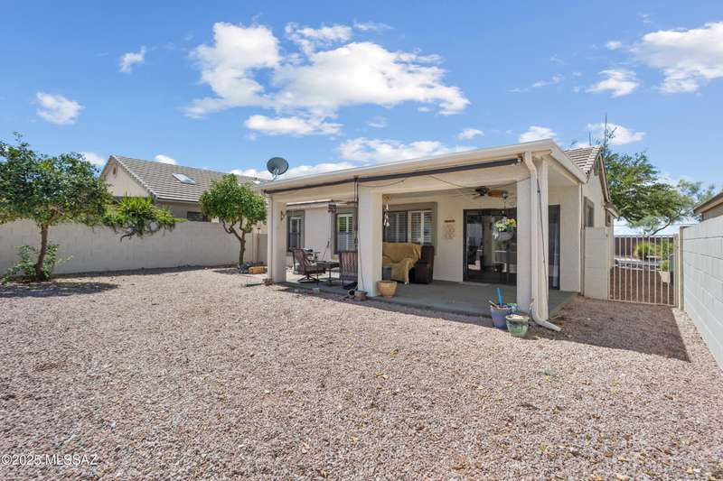Move-in ready home located on a quiet cul-de-sac! Home in the Cove community in the Voyager! 55+ gated community. This spacious residence offers an open and inviting floor plan. This wonderfully update kitchen features quartz counters and plentiful cabinets with island that flows seamlessly into the dining and living areas-perfect for entertaining. 2 bedrooms/2 baths. Owner's suite features a walk-in closet and private bath. Immerse yourself in outdoor Arizona living on the large covered patio in the private backyard and low maintenance landscaping. This home has high vaulted ceilings and a garage. The Voyager Resort has all the amenities, including 3 pools, spa, golf, tennis, shuffleboard, pickelball, restaurant, classes, crafts, entertainment and much more!!