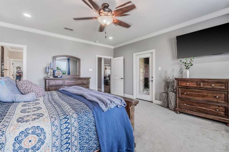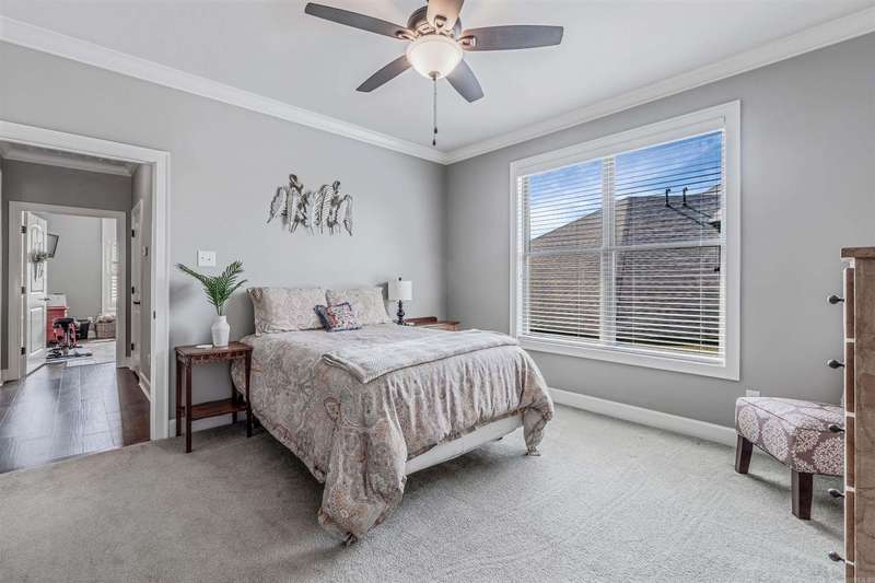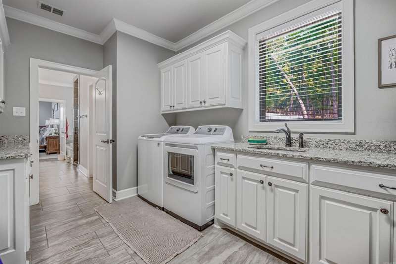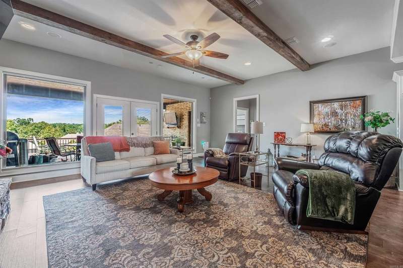 Welcome to this stunning custom built home with an open floor plan. Featuring 3 spacious bedrooms, dedicated office, and a formal dining room, this home offers both comfort and functionality. The kitchen is a chef's dream, boasting abundant cabinet storage, a breakfast bar, wall over, granite countertops, farmhouse sink, and stainless appliances. In the living room, wood beam accents and a stone fireplace hearth create a warm, inviting atmosphere that opens to a covered patio and deck-perfect for entertaining. The Primary Suite s a true retreat, completer with a luxurious bathroom featuring a walk-in shower, soaking tube, dual sinks with ample storage, and an impressive walk in closet. Conveniently connected, the laundry room includes a sink, generous counter space, and additional cabinetry. This home is the perfect blend of thoughtful design, comfort and style.