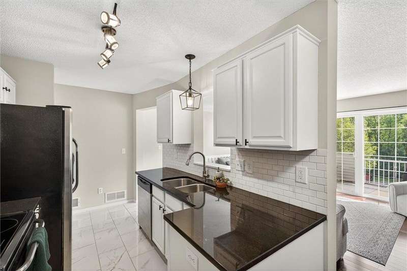 Welcome to this pristine, beautifully updated home in a quiet, yet convenient neighborhood of Prior Lake. This home streams sunlight and greenspace views with quality updates not expected at this price. The spacious deck is perfect for taking in the views of towering trees and forest where you can enjoy both grilling or an evening fire. The main living area has gleaming hardwood floors, fresh paint and enameled trim which creates a nice open feel. The kitchen has been fully updated with granite counters offset by subway tile, stainless appliances, enameled white cabinetry, and porcelain tile floor. New 6 panel solid wood doors have been added throughout. There are two spacious bedrooms upstairs, each with their own window bench and new blackout top/down blinds. The owner's bedroom has a walk-in closet. All new hardware and lighting throughout finish off the stylish improvements. Many mechanical updates including newer washer and dryer, water softener, air conditioner and roof. You will move in and enjoy this home!