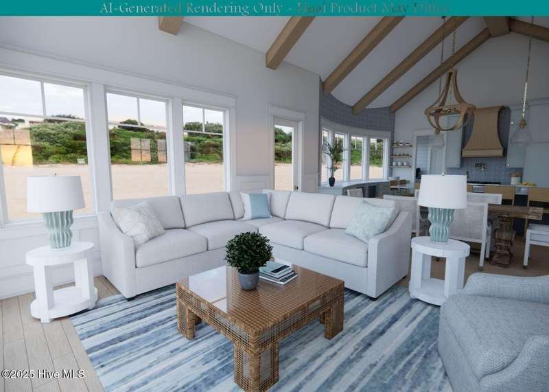 RARE OPPORTUNITY! 1/3rd share of this Frying Pan Shoals' High Dunes Executive Retreat showcasing ocean panoramas off BOTH East & South Beaches! Imagine rocking on the covered front porch of this under-construction 6BR, 5.5BA sanctuary, listening to & watching waves on South Beach. Or stepping into the sunny first-level gathering space & spying East Beach surfers from inside or out on this floor's 2nd covered porch. Inside, hardwoods lead to 5 BRs. The 1st bright suite, cornered by light-sharing windows, provides Atlantic seascapes, porch access, & a private full BA. Down the hall, 2 more sunlit, window-cornered BRs share a Jack & Jill BA (one also enjoys water vistas). Two additional suites, overlooking South Beach, are likewise equipped w/ ensuites. The laundry room is at the end of the hall. This home's vaulted open-floor plan's top level is flooded w/ natural light from surrounding windows, which grant captivating water scenes. ALL-GLASS eastern wall showcases the Atlantic. Savor this spectacle inside or on the deep, covered lounging/dining porch. Chefs in the bayed gourmet kitchen will not only relish seascapes but also high-end appliances, a generous prep island/breakfast bar, & the walk-in pantry. Diners may eat in the elegant indoor dining area or alfresco on the dining porch. A comfortable living space is perfect for conversation, movie-watching, & relaxing. Tucked at the far end of this floor is the very private Primary Suite. Starting with an office alcove, it opens to reveal a haven boasting expansive ocean prospects, a large walk-in closet, & a pampering spa-like ensuite. A powder room completes this level. Ideally located, steps from East & South Beaches, & the Shoals Club, and just minutes to shops & restaurants. Inquire about club memberships. JUMA is in-progress. See docs for details on finishes, flooring & appliances. Interior photos are AI-generated renderings only. Two 1/3rd shares (100524771 & 100524772) are available OR whole home (100525157)