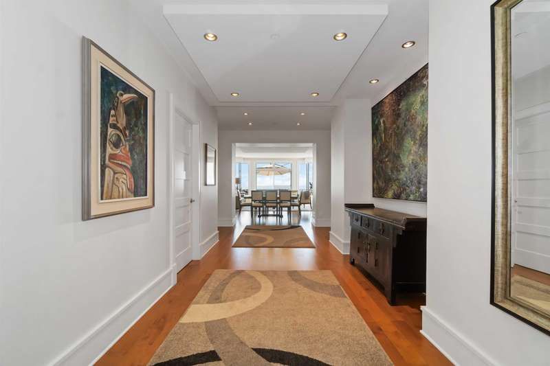 Experience luxury living in this stunning sub-penthouse, one of only eight exclusive residences. This corner unit offers unparalleled one-level living with a private elevator leading to an enclosed two-car garage. Enjoy breathtaking panoramic ocean and city views from the grand living room with floor-to-ceiling windows, or step out onto the expansive outdoor patio. The gourmet kitchen features a large island, eating area and Miele and Sub-Zero appliances. Retreat to the spacious primary suite with stunning views, a large walk-in closet, and a spa-like ensuite. Additional features include a family room, office, 3 fireplaces, geothermal heating, a/c, and over 1,000 square feet of outdoor living space. This home is truly special! OPEN HOUSE SUNDAY NOV 16th 1-3pm