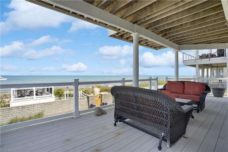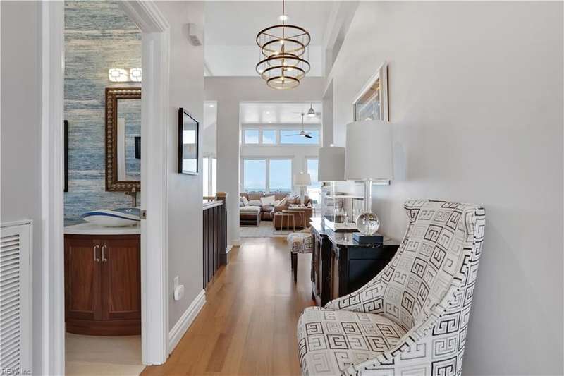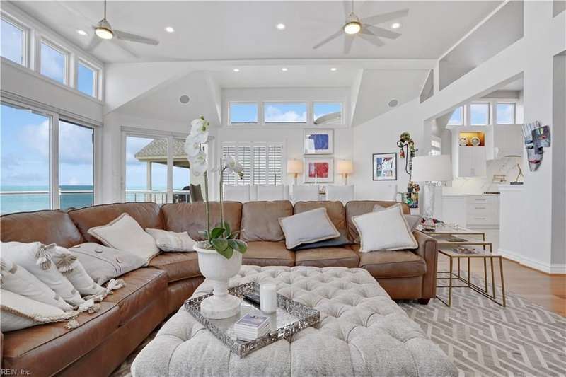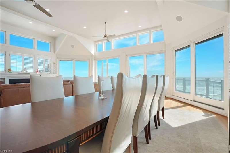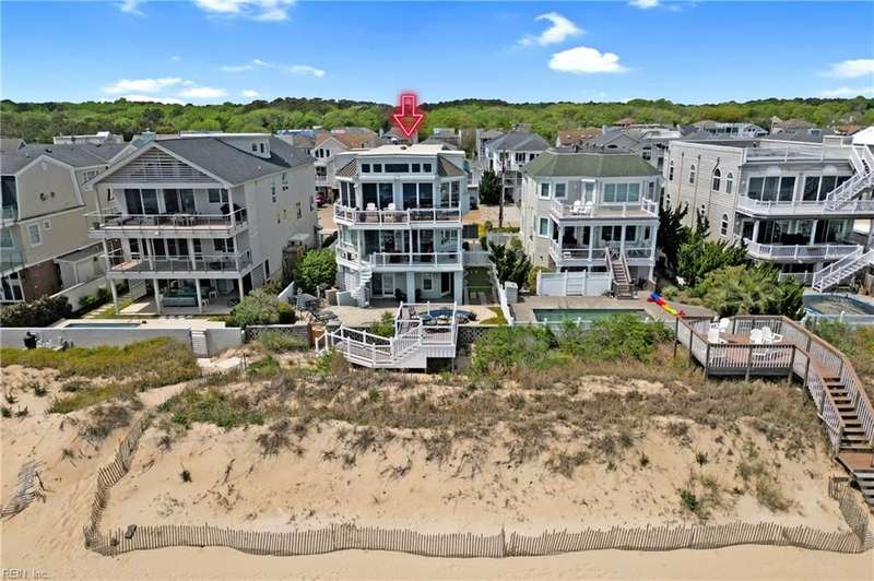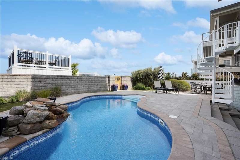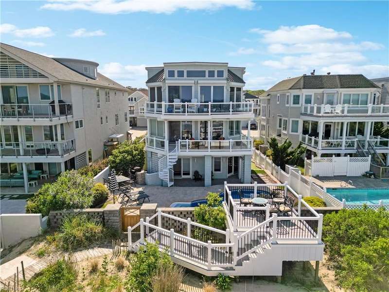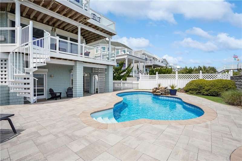 Oceanfront luxury living in Croatan! Experience the breathtaking views of the Atlantic Ocean in this tastefully renovated 5 bedroom, 4.5 bath property. With 5000 sf of thoughtfully designed space that perfectly incorporates the expansive views of the coastline, this spacious and airy home is both relaxing and chic. Open concept w/ family rm, dining rm, breakfast nook and kitchen on 3rd floor and oversized primary suite on 2nd floor, 2 large balconies overlooking the ocean and an elevator. Recent luxury updates include: new kitchen w/ exotic quartz countertops ('23), Viking appliances, 2 Miele dishwashers, 3 renovated bathrooms ('24), refinished stairs and wood floors ('24), all interior and exterior paint, new roof and Copper roof accents ('22), new pool liner and paver surround ('24), new generator ('22), all new Trex decking, deck glass railings and spiral staircase ('22), 2 new HVAC ('23 & '24), 3 new garage doors ('23), new putting green and new professional landscape.