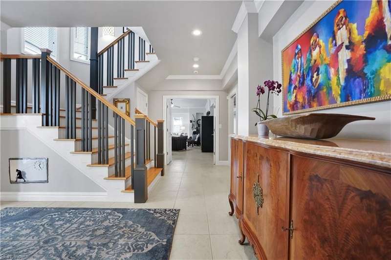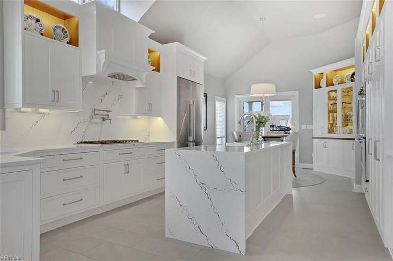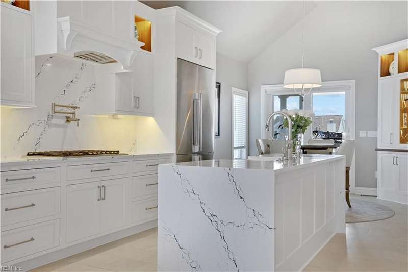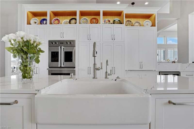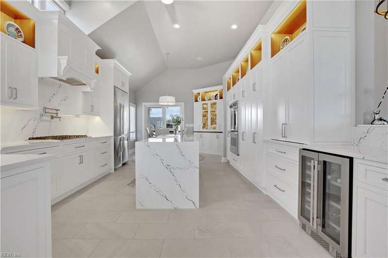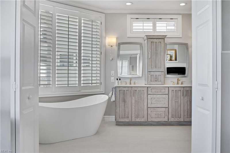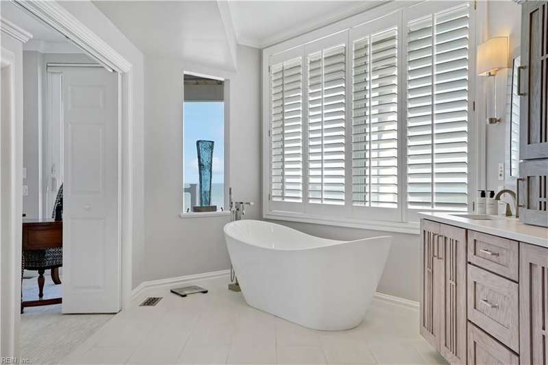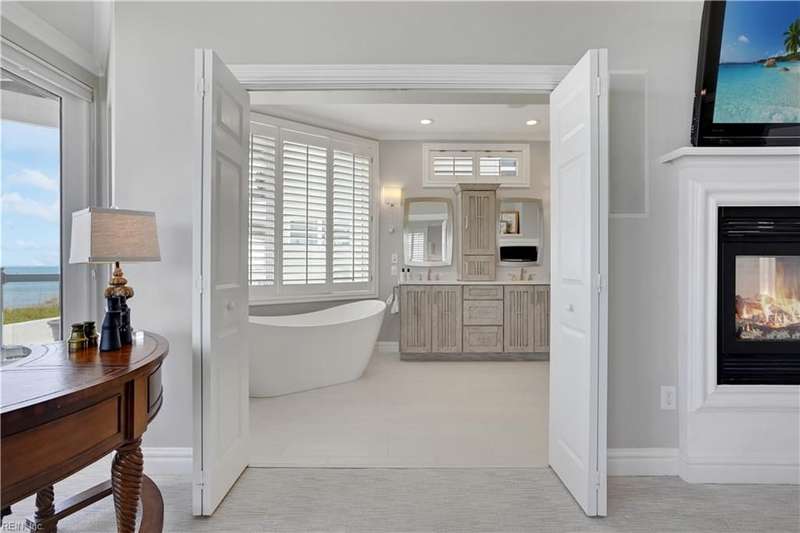 Oceanfront luxury living in Croatan! Experience the breathtaking views of the Atlantic Ocean in this tastefully renovated 5 bedroom, 4.5 bath property. With 5000 sf of thoughtfully designed space that perfectly incorporates the expansive views of the coastline, this spacious and airy home is both relaxing and chic. Open concept w/ family rm, dining rm, breakfast nook and kitchen on 3rd floor and oversized primary suite on 2nd floor, 2 large balconies overlooking the ocean and an elevator. Recent luxury updates include: new kitchen w/ exotic quartz countertops ('23), Viking appliances, 2 Miele dishwashers, 3 renovated bathrooms ('24), refinished stairs and wood floors ('24), all interior and exterior paint, new roof and Copper roof accents ('22), new pool liner and paver surround ('24), new generator ('22), all new Trex decking, deck glass railings and spiral staircase ('22), 2 new HVAC ('23 & '24), 3 new garage doors ('23), new putting green and new professional landscape.
