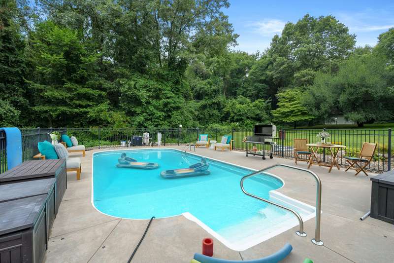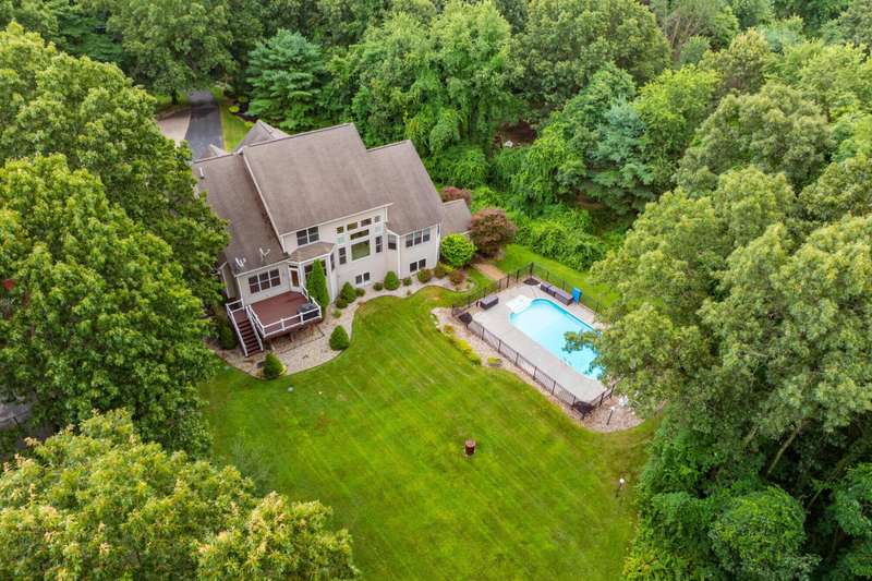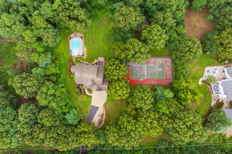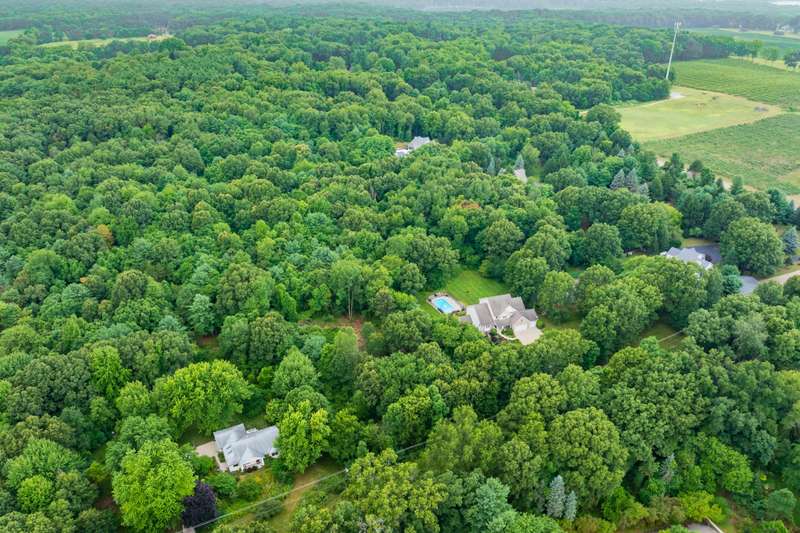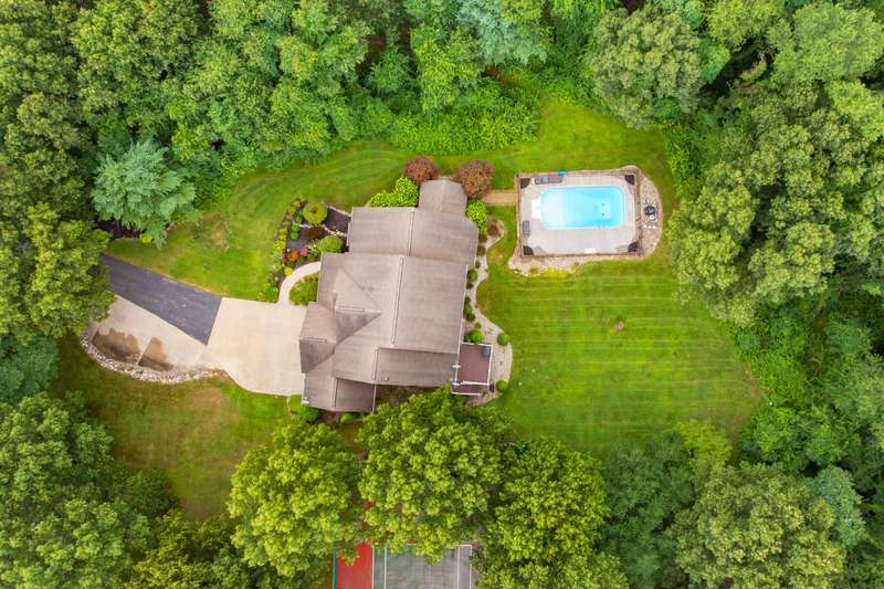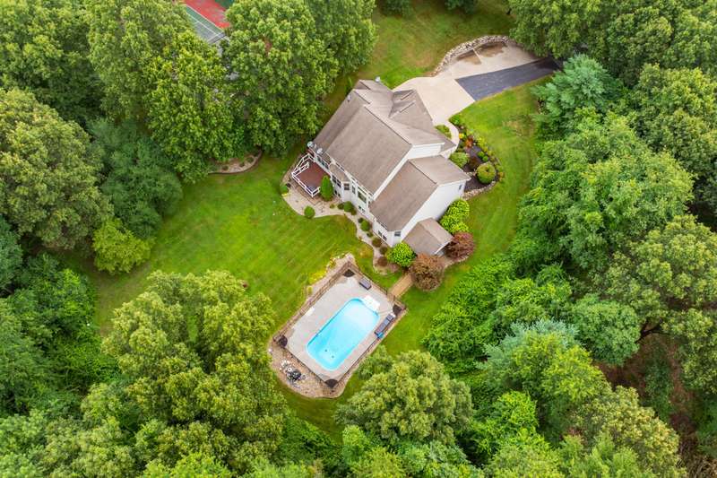 Custom Texas Township home on just under 4 acres!! Walkout w/4850 finished sq is a combination of impeccable craftsmanship meets comfortable living! Property offers beautiful yard w/mature trees, professional landscaping and inground heated pool, tennis court & large detached storage building! Stunning front entry into spacious, light filled 2 story great room, Kitchen features updated quartz countertops, stainless appliances & beautiful maple cabinets & opens to the keeping room w/fireplace and eating area overlooking private acreage & deck. Formal dining /Office, Large laundry room & half bath. Main floor Primary bedroom is luxurious! Primary bathroom w/soaking tub His/ Hers vanities, water closet & walk in shower, large walk in closet. 2nd floor features 3 generous bedrooms, one with full bath & large walk-in closet. Two bedrooms share a Jack & Jill Bath Home boasts an impressive finished walkout basement w/large family room, wet bar w/wine frig and a wall of built in cabinets. Plenty of space for a pool table, home theater area, or 5th bedroom. Sliders to your private outdoor oasis. Step out to a beautiful covered patio that leads to the in-ground pool. For sports enthusiasts, the full-court tennis courts provide the perfect space for friendly matches. Could be converted to a pickleball court w/the $15,000 credit to buyer at close. A detached 20 X 25 shed for all your storage needs. The property was professionally landscaped & features large mature trees, shrubs, perennials, ensuring seclusion and a sense of tranquility. A whole-house generator guarantees uninterrupted comfort. Don't miss the opportunity to make this dream home your own. SELLER OFFERING A $15,000 CREDIT AT CLOSING TO RESURFACE TENNIS COURT