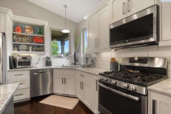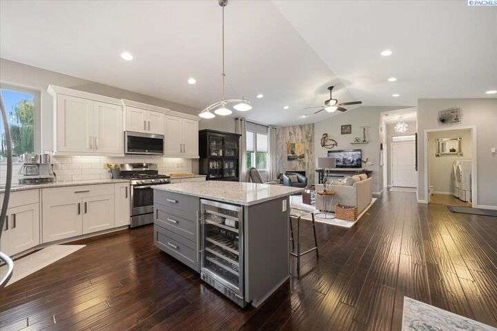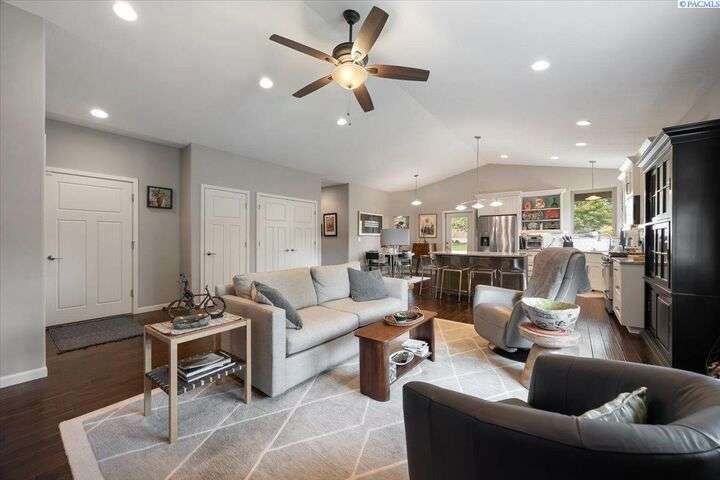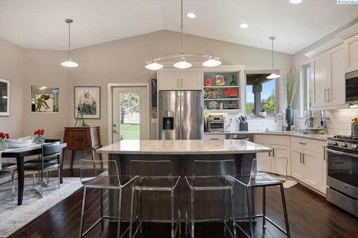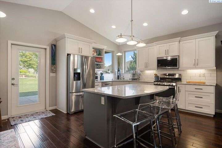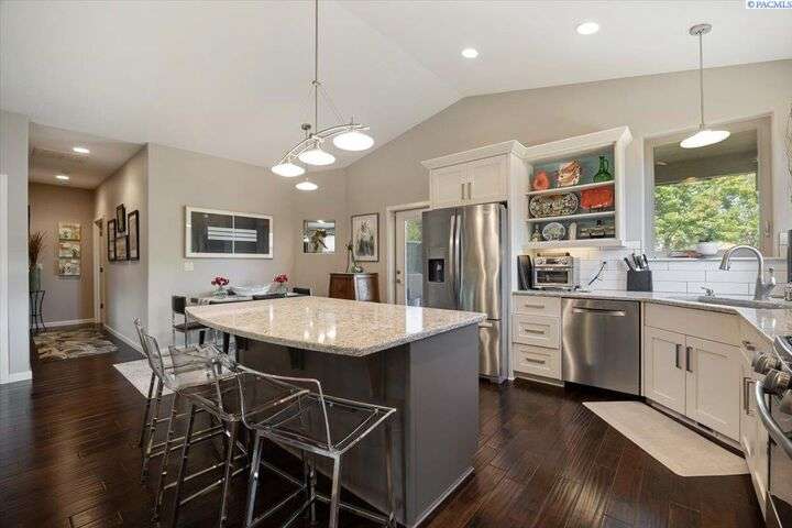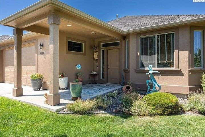 MLS# 286668 Welcome to this special custom desirable one-level home in the sought-after Ridgeline-Canyon Lakes Community. This 3-bedroom, 2-bath residence is truly unique with wonderful detail including lovely vaulted ceilings that blend refined comfort with functional living and lots of style and unique touches. The chef’s kitchen boasts gorgeous countertops, stainless steel appliances, a large island with breakfast bar seating, and a spacious double-door pantry. Multiple storage options—coat, broom, and linen closets—help keep everything organized.The primary suite is a true retreat, featuring a generously sized bedroom, walk-in closet, and amazing bathroom with a walk-in shower and dedicated linen closet. The garage is perfect for hobbies or projects.A custom built home, the interior is beautifully styled and meticulously maintained. Outdoors, the private patio overlooks a lush green space with mature trees, offering a peaceful setting for entertaining or relaxing. Additional highlights include a dedicated laundry room with cabinetry, an owned water softener, and timeless finishes throughout. Located in a beautiful golf course community, this home offers both elegance and convenience in a prime location.