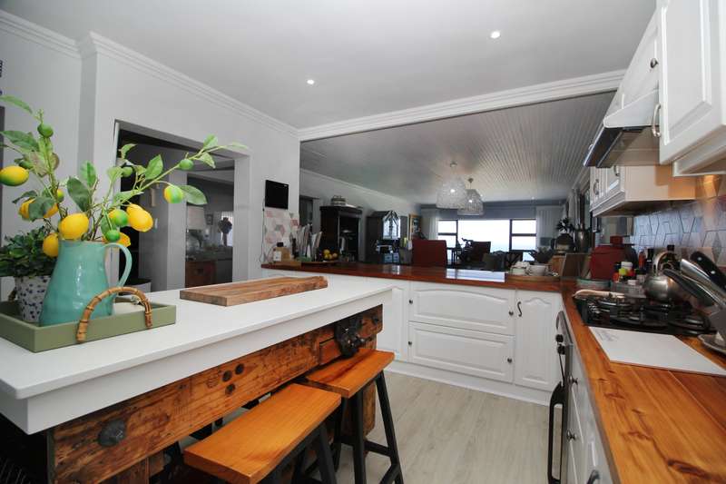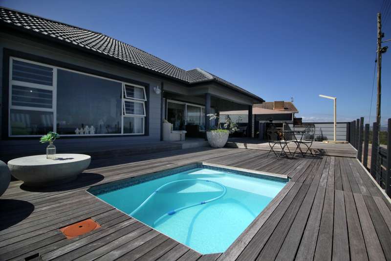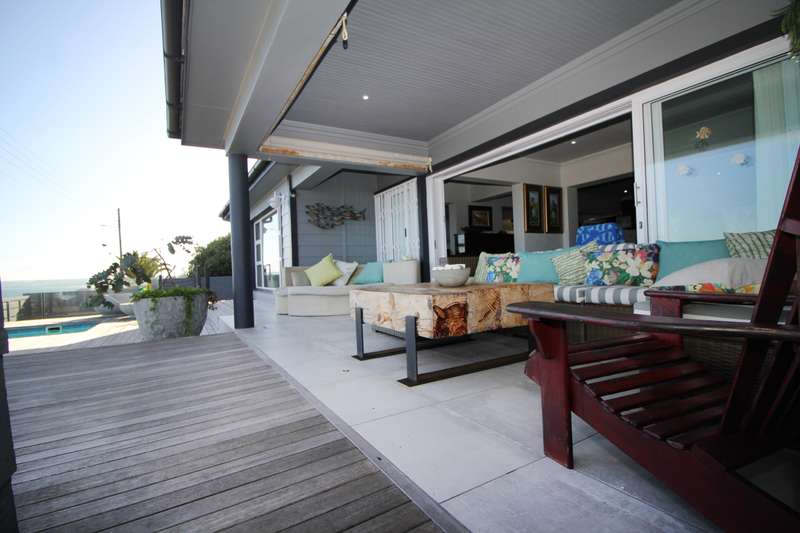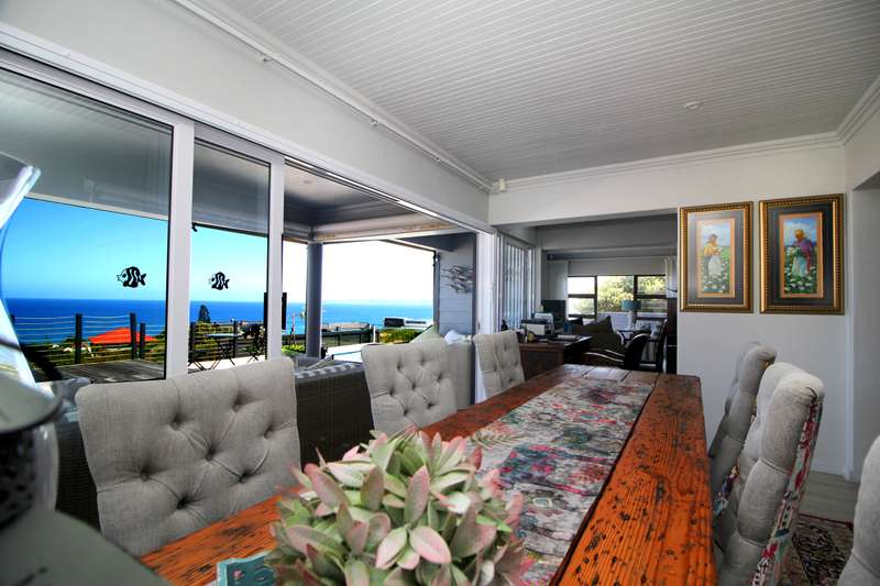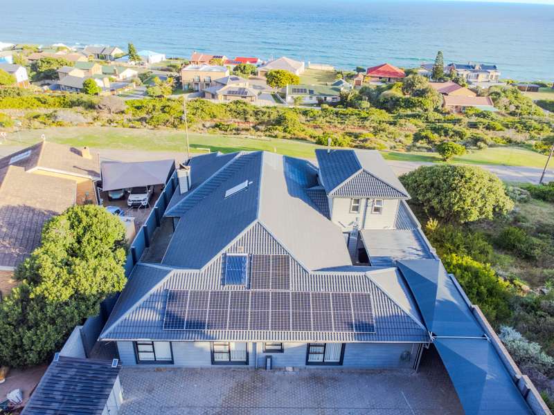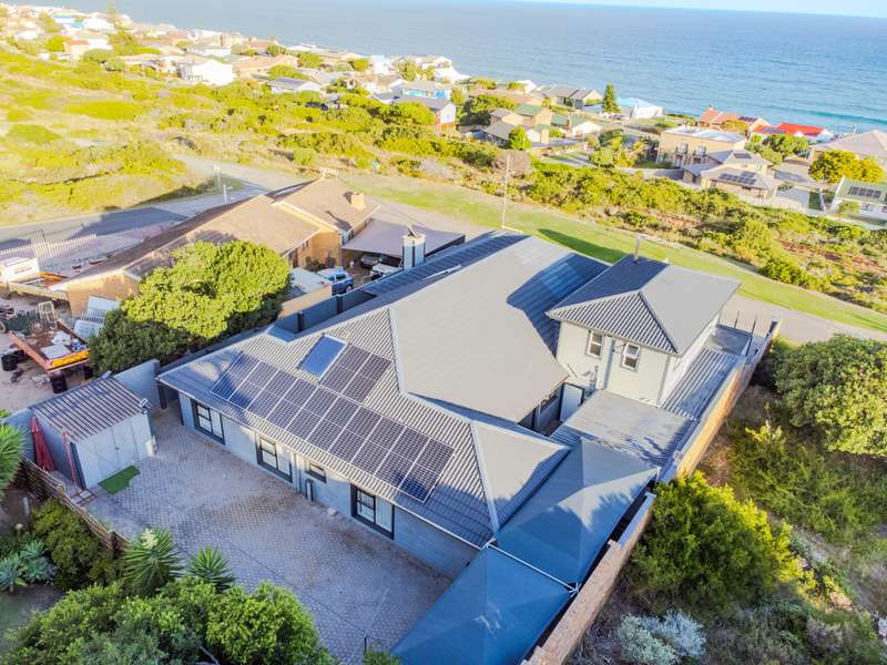 Welcome to this entertainers dream of a home. 6 bedrooms and 4 bathrooms with a massive garage that can fit 5 cars. One of the bedrooms has separate entrance so perfect for air bnb or guest room with its own lounge. Main bedroom is upstairs with bathe and shower with a view of the ocean. Large living area with dining room and patio with a splash pool. 180 degrees view of the ocean and Mosselbay. Walking distance to the beach with a green belt in front of the home so you will never loose your view. one of the garage is open at the back for you to have easy access to more carports for more parking and kitchen. The kitchen is a large farm style kitchen with lots of cupboards and top of the range appliances. Separate scullery and laundry. 10 kwh inverter with solar panels. Reebok is a very peaceful neighbourhood with loads of indemnities markets and Restaurants in the area. Call now to view