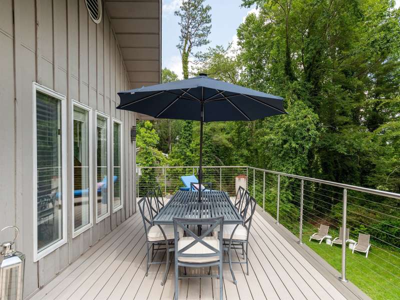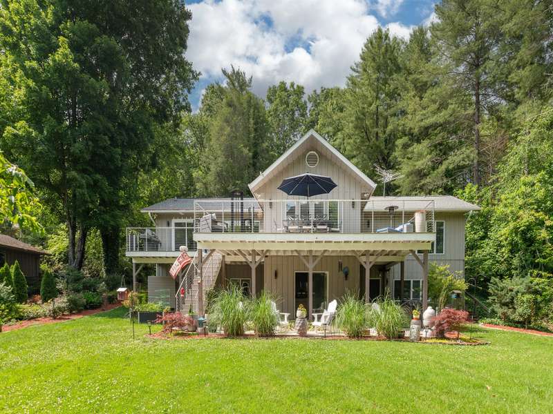 Discover your dream lifestyle in this beautifully remodeled home, with high-end modern features. View the lush scenic fairway and flower gardens. The great room's solid ash wide plank floors, custom stone fireplace and cathedral ceiling welcome all. Gather friends and family in the light-filled dining room leading to a stunning chef'skitchen highlighted by a central island, gleaming granite countertops, induction range and access to the expansive composite deck with stainless steel cable railings. A stainless and glass framed ash stairway leads to the comfortable entertainment haven below. The fireplace has contemporary stone, adjacent wet bar and a wine cooler. Step out on the patio to relax in the hot tub and use the outdoor shower. Guests will enjoy the media and game/pool rooms. Nearby are the new Ecusta Trail, breweries, waterfalls, trout streams & dining!