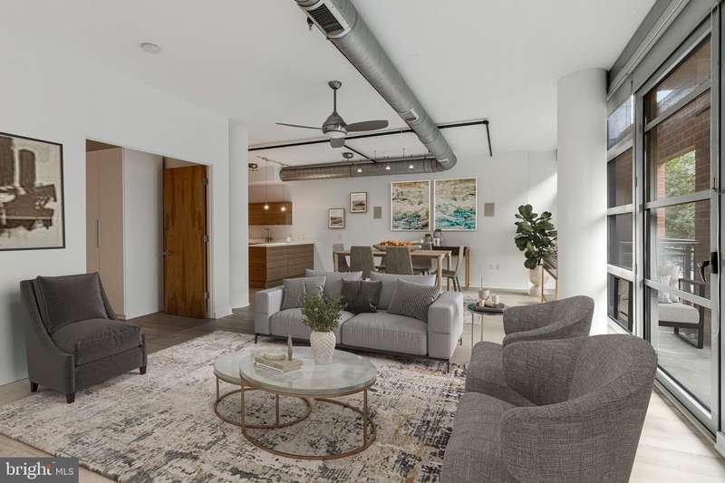 Incredible Modern Loft Living in the Heart of DC Step into this stunning 1,385 sq. ft., 2 bed / 2 bath residence at Lofts 11 with direct elevator entry and soaring ceilings. A spacious foyer opens to a dramatic, open-concept layout with floor-to-ceiling windows and a large private balcony perfect for morning coffee or evening sunsets. The gourmet kitchen is a chef's dream, featuring custom cabinetry, granite countertops, Porcelanosa backsplash, breakfast bar, and top-tier appliances including a Wolf gas range and Subzero refrigerator. Flow seamlessly into the expansive living and dining area designed for both comfort and entertaining. Retreat to the luxurious primary suite with a walk-in closet and spa-inspired bath with a frameless glass shower. A spacious guest bedroom, modern hall bath, and custom closets throughout complete this home. Additional highlights include dimmable lighting, industrial-chic accents, in-unit washer/dryer, extra storage, and more. Lofts 11 is a boutique, eco-friendly building with a secure lobby and pet-friendly lifestyle. Unbeatable location steps to Blagden Alley, Mount Vernon Triangle, Shaw, and Logan Circle with premier dining, cafes, fitness studios, and shops at your doorstep.