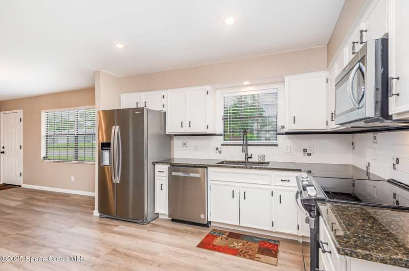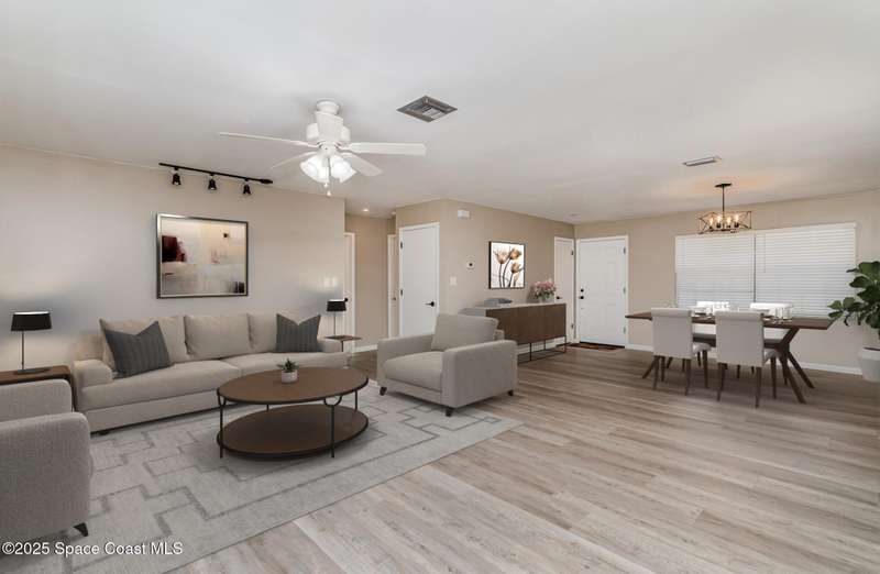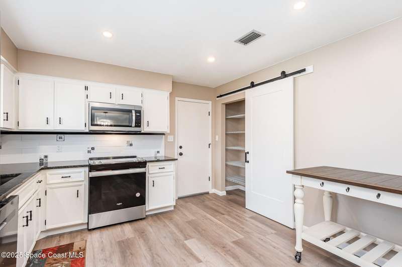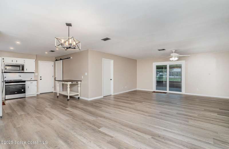 Fall in love with this fully RENOVATED ranch-style gem! With its 2-CAR garage and peaceful, FAMILY-FRIENDLY neighborhood, this home is move-in ready and waiting for you. Enjoy a NEW 2024 gable roof, fresh interior and exterior paint, and wood-look waterproof flooring that flows beautifully into cozy, carpeted bedrooms. The kitchen wows with NEW stainless steel appliances, granite counters, and a pantry behind a stylish barn door. Thoughtful touches like recessed lighting, ceiling fans in every bedroom, and custom closet shelving make life easy. Unwind on the spacious glass-enclosed porch or admire the home's inviting curb appeal. Just minutes to schools, the Indian River, and Fay Lake Parkthis is modern comfort made affordable!