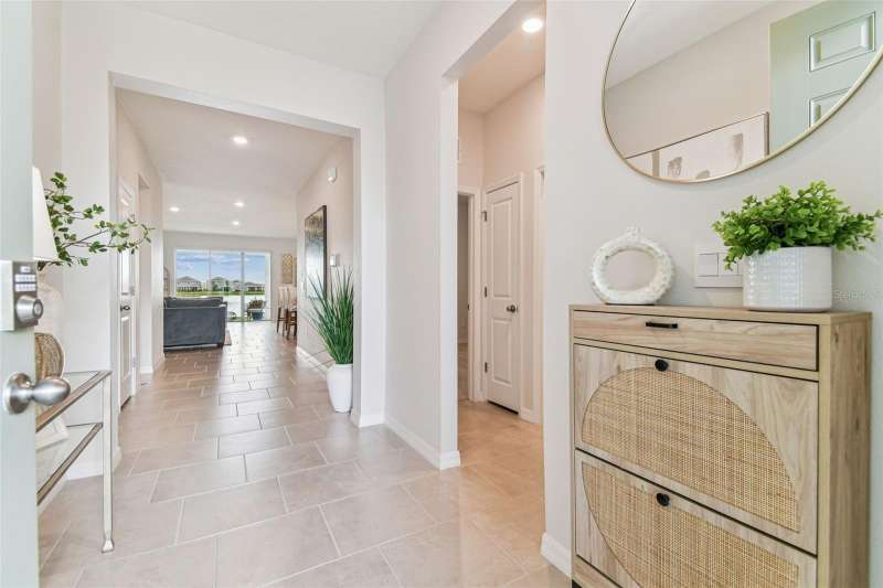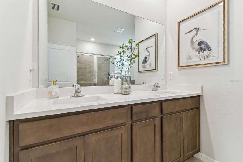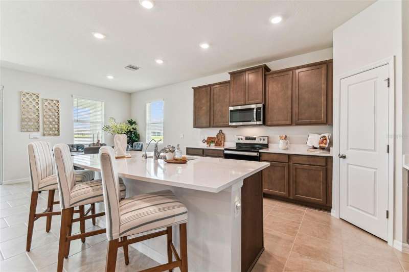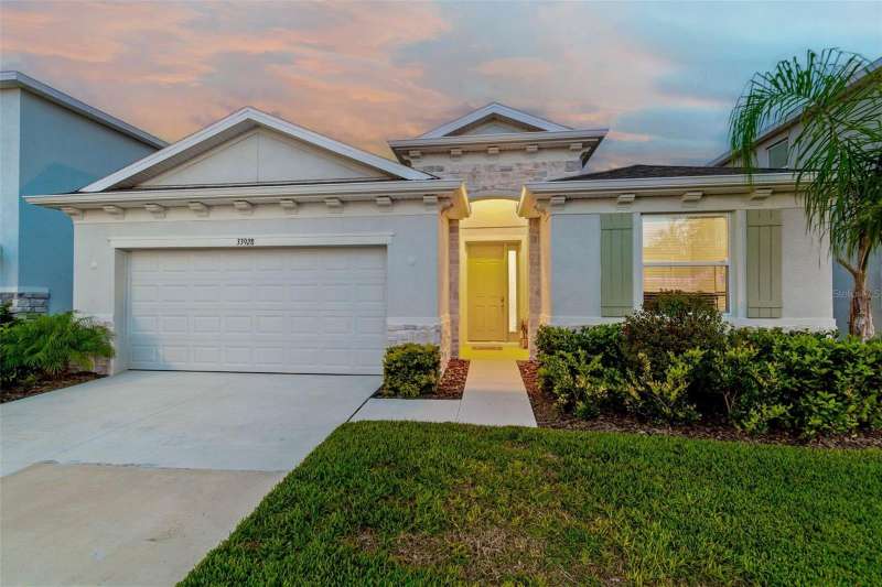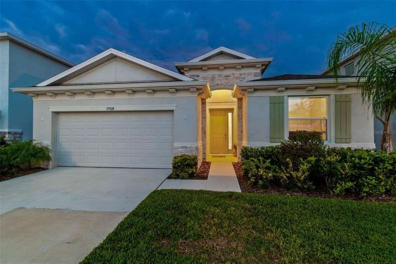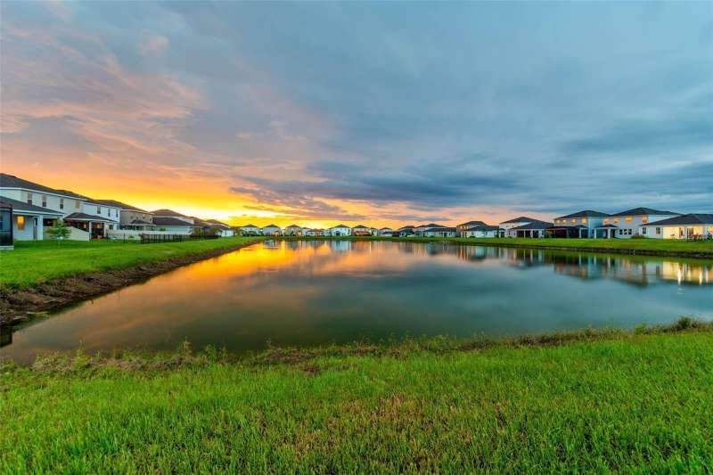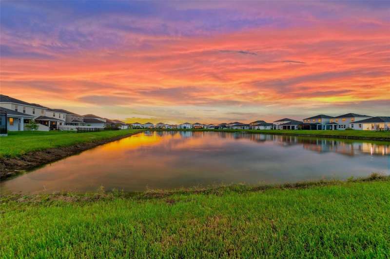Under contract-accepting backup offers. Better than a new build and ready now! This stunning, ONE YEAR YOUNG home is located in the highly sought-after community of AVALON PARK IN WESLEY CHAPEL. Impeccably maintained and thoughtfully upgraded, this home features 4 spacious bedrooms, 2.5 bathrooms, and a 2-car garage, offering both style and functionality. This home is ENERGY EFFICIENT for LOW AND AFFORDABLE UTILITY BILLS! The open-concept layout is enhanced with upgraded tile flooring throughout, CUSTOM SLIDER BLINDS, high elevated ceilings for that luxury look, tall baseboards, and fresh, neutral interior paint, creating a bright feel throughout. Don’t forget about the BRAND NEW GUTTERS and INCLUDED WASHER AND DRYER! The primary suite is a peaceful retreat, complete with dual walk- in closets, QUARTZ countertops, a walk-in shower, soaking tub, and double vanities. The split floor plan offers privacy with spacious secondary bedrooms and an ideal setup for guests. The heart of the home is the MASSIVE KITCHEN, which INCLUDES ALL stainless steel appliances, QUARTZ countertops, decorative glass tile backsplash, upgraded cabinetry, a LARGE CENTER ISLAND, and a counter height seating. The kitchen flows seamlessly into the main living area, where SLIDING GLASS DOORS open to a COVERED PATIO creating a seamless indoor-outdoor connection. Step outside for the STUNNING POND VIEW that sets this home apart! With NO REAR NEIGHBORS, the backyard becomes a private oasis where peaceful water views and BREATHTAKING SUNSETS can be enjoyed everyday. Whether relaxing after a long day or hosting evening gatherings, this setting offers the perfect backdrop for quiet moments and memorable experiences. Located in a quiet neighborhood with sidewalk lined streets, the community features LOW HOA fees, a community pool, splash pad, playground, and open green space for outdoor fun. Avalon Park hosts REGULAR COMMUNITY EVENTS such as FOOD TRUCK nights, HOLIDAY EVENTS and FUN, FIREWORKS, and more! All of this is nestled in the ever-growing Avalon Park area, where exciting additions are on the horizon, including a town center with shops and dining, medical facilities, and community events. The designed village that has been created is a true LIVE-WORK-PLAY LIFESTYLE in one of Wesley Chapel’s most vibrant communities. This PRIME LOCATION also provides easy access to I-75 and I-275, providing quick access to downtown Tampa. Just minutes from Wiregrass Mall, The Grove, KRATE at the Grove, Tampa Premium Outlets, Cooper’s Hawk Winery & Restaurant, top HEALTHCARE FACILITIES, and RECREATIONAL SPOTS, this LOCATION offers a balanced lifestyle with EVERYTHING you need nearby.