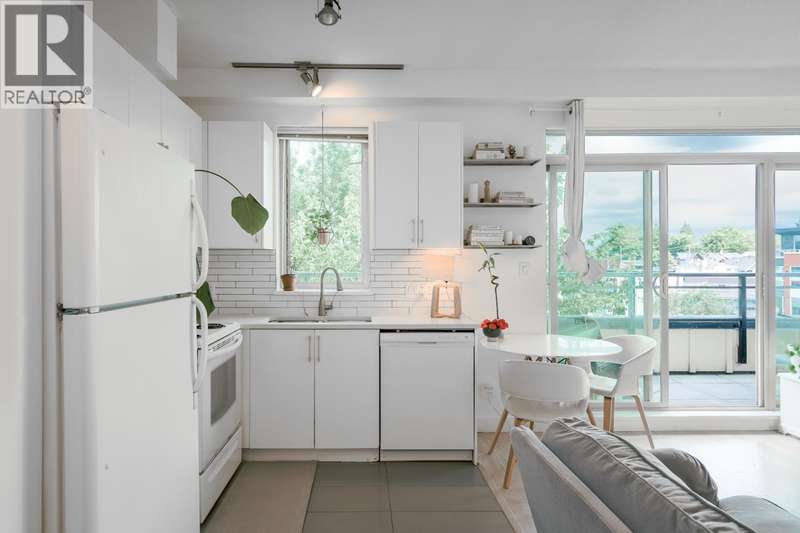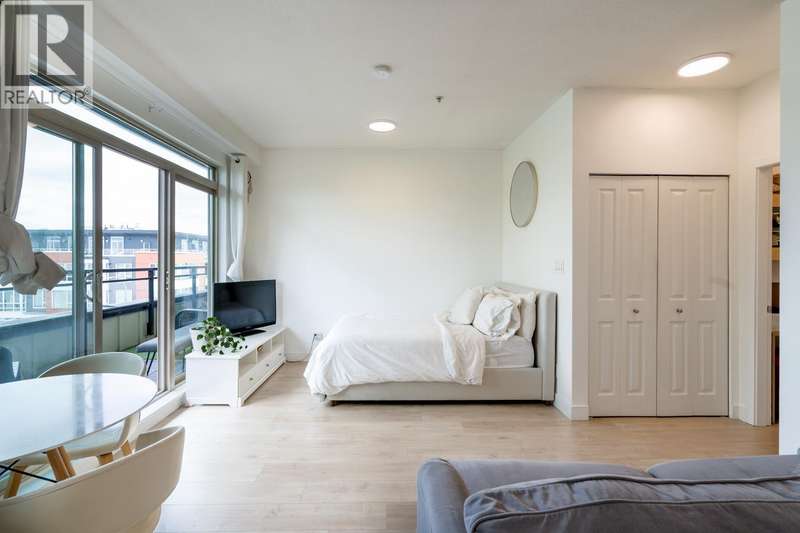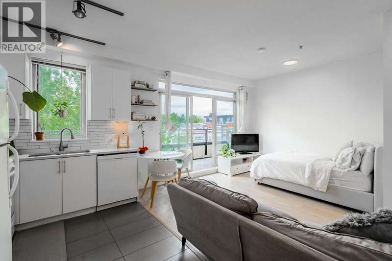 Welcome home to this north-facing penthouse studio with a private 168 square foot patio! This is the perfect starter home or could be a great investment for someone wanting to grow their Real Estate portfolio. This home greets you with new laminate flooring, fresh paint, updated quartz countertops, and some updated appliances, while the over-height ceiling and large windows brighten up the space with plenty of natural light. Step outside onto your oversized patio which boast beautiful views of the North Shore Mountains. This boutique building is situated in the heart of Fraserhood and within walking distance to all our favourite places - Matchstick, Jaybird, Savio Volpe, Earnest Ice Cream, grocery stores, parks - and just a short drive to the city, beaches, and more! Open House: Sunday, November 2nd from 1-3pm. (id:58403)