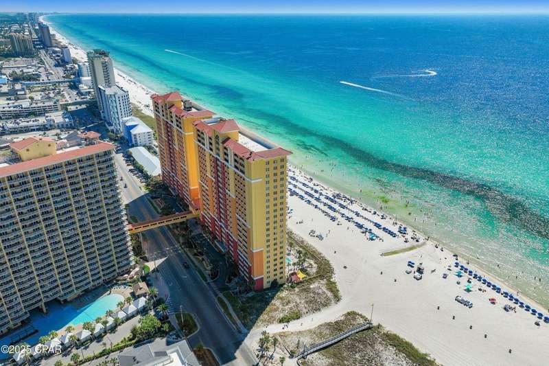 Elegance and convenience unite in this stunning 3-bedroom, 3-bathroom corner unit on the 6th floor of Calypso Tower III. Offering expansive, unobstructed Gulf views, this beautifully appointed condo is a prime opportunity for a vacation home or high-performing rental investment. Located on the quiet west end of Panama City Beach, Calypso Resort is adjacent to Pier Park, offering premier shopping, dining, entertainment, and year-round events. The Russell-Fields Pier and Frank Brown Park Sports Complex are just minutes away, along with Gulf World Marine Park, championship golf courses, and family-friendly attractions. Step inside to find an open and airy layout, professionally designed with stylish coastal d���©cor. The fully equipped kitchen features quartz countertops, GE stainless steel appliances, and a breakfast bar, perfect for entertaining. The spacious living area opens to an oversized private balcony, ideal for enjoying breathtaking views of the Gulf, especially at sunset! Calypso Tower III boasts resort-style amenities, including a Lagoon-style zero-entry pool, heated in cooler months, a Spacious hot tub, Nine private, rentable cabanas, Two tiki bars and the Emerald Hub bar & grill, Fire pit and lounge areas, large fitness center, and an on-site restaurant and caf���©. Don't miss this rare opportunity to own a slice of paradise in one of the most sought-after beachfront destinations! Schedule your private tour today.