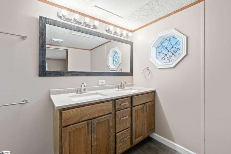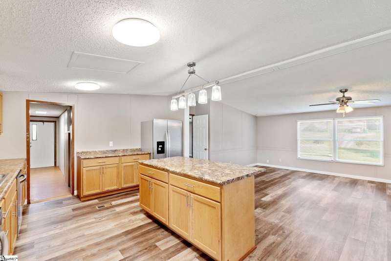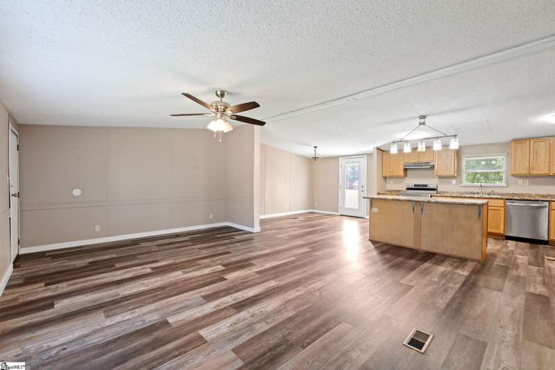 Don’t miss this 3-bedroom, 2-bathroom residence on over half an acre in the heart of Five Forks with no HOA. Step onto the welcoming front porch and into a bright great room featuring tall ceilings, abundant natural light, and LVP flooring throughout - no carpet anywhere. The open living and dining areas flow perfectly for everyday living or entertaining. The updated kitchen offers plenty of storage with newer cabinets and countertops, stainless steel appliances, and a large center island. Enjoy the privacy of a split floor plan with the spacious primary suite tucked away on its own wing. This oversized bedroom features three extra-large closets, and the en suite bathroom includes a double-sink vanity with a new countertop and a large tub/shower combo. Two additional bedrooms, both with large walk-in closets, are located on the opposite side of the home and share a remodeled hall bath with granite vanity and a second tub/shower combo. Just off the kitchen, you’ll find a walk-in laundry room and a large storage area with exterior access to the side yard. Outside, a refinished deck overlooks the expansive yard - perfect for relaxing or entertaining. The HVAC was replaced in 2022 and the septic was pumped in the past year. The location is unbeatable, just minutes from MESA Soccer Complex, shopping, dining, and more. Zoned for award-winning Bell’s Crossing Elementary, Riverside Middle, and Mauldin High. A HUD Engineering Certification Report is on file, and the home should qualify for FHA financing if detitled at closing. For details on the detitle process, contact the listing agent. A lender and closing attorney are available to assist. Schedule your showing today - this Five Forks gem won’t last! Contact Ashley Steigerwald with Wilson Associates at 864-907-0601 or ashley@wilsonassociates.net.