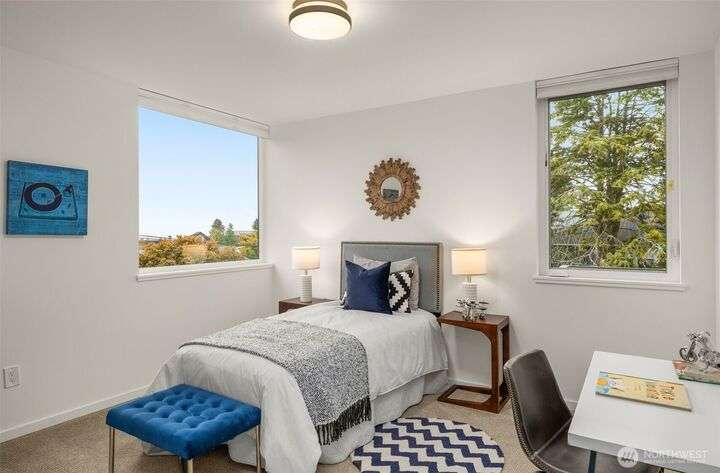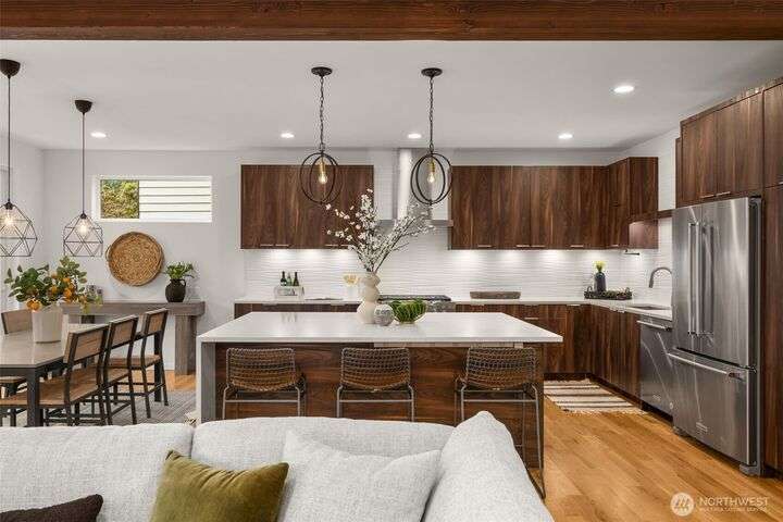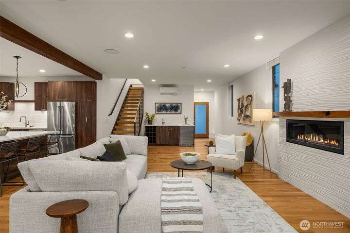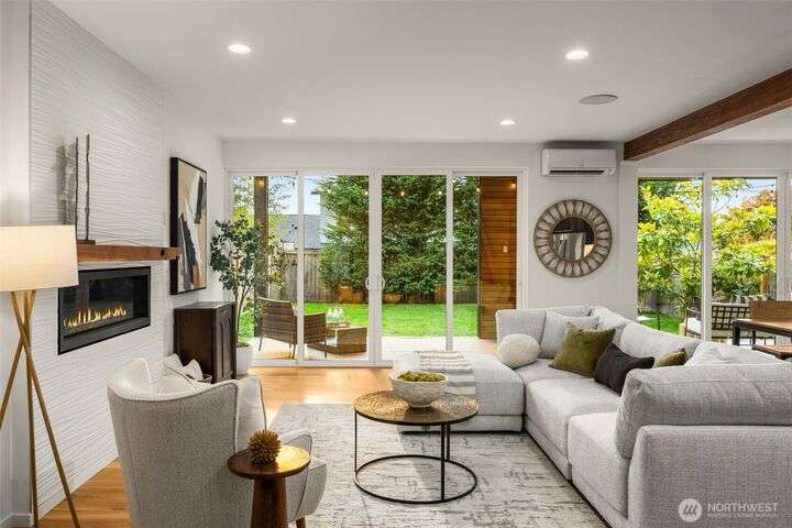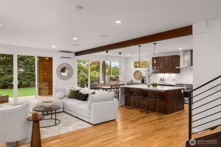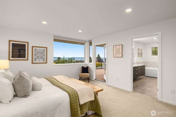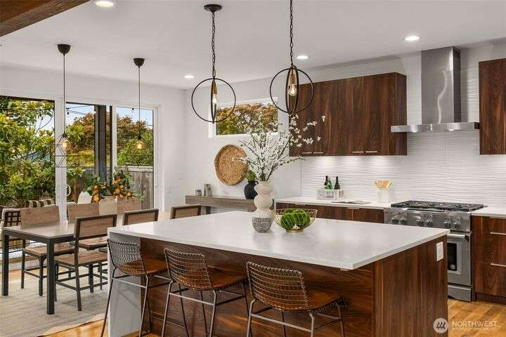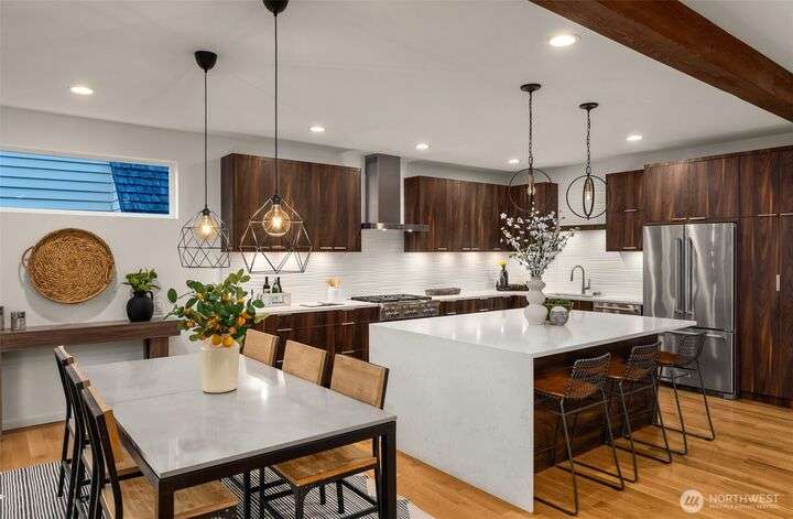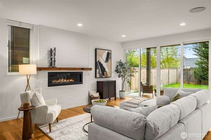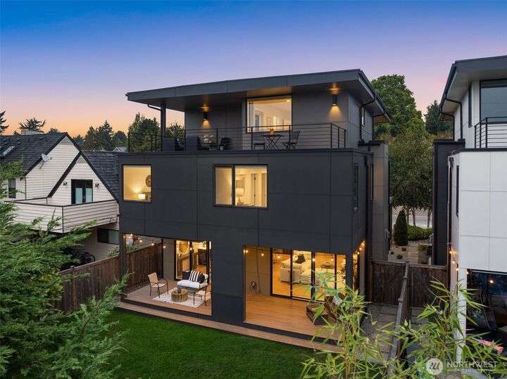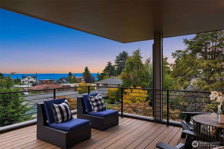 Sophisticated modern living in the heart of North Admiral. This architectural gem showcases an open layout, high ceilings, & oversized windows that bathe each room in natural light. The spacious floorplan offers 4 bedrooms, dedicated office, second great room, & flex space, providing exceptional versatility. A striking kitchen with expansive island anchors the main level, designed for daily living and elegant entertaining. Floor-to-ceiling slider doors open to a lush, fenced backyard for seamless indoor-outdoor living. The primary suite w/ roof deck captivates with sweeping views of Puget Sound & Olympic Mountains. Perfectly positioned near Admiral’s vibrant cafes & shops, this home is a rare blend of refined design, comfort, & location.
