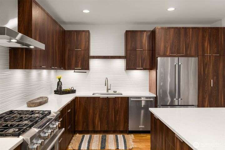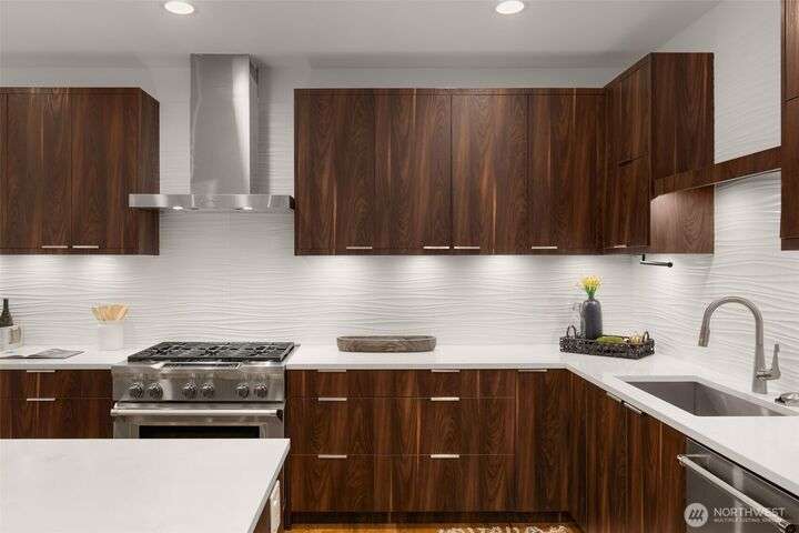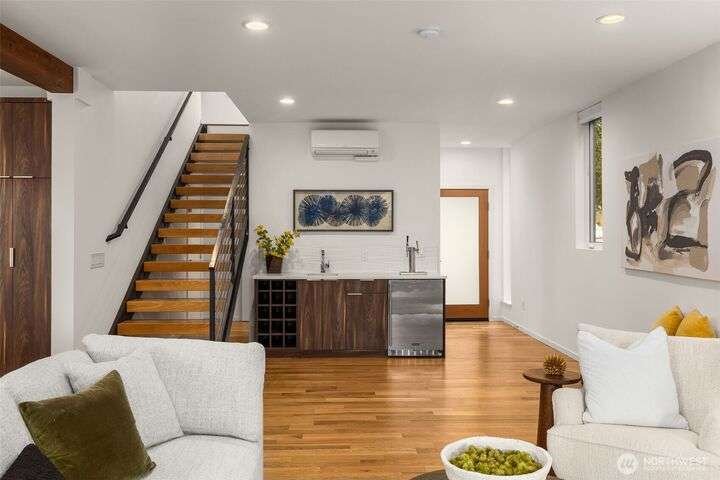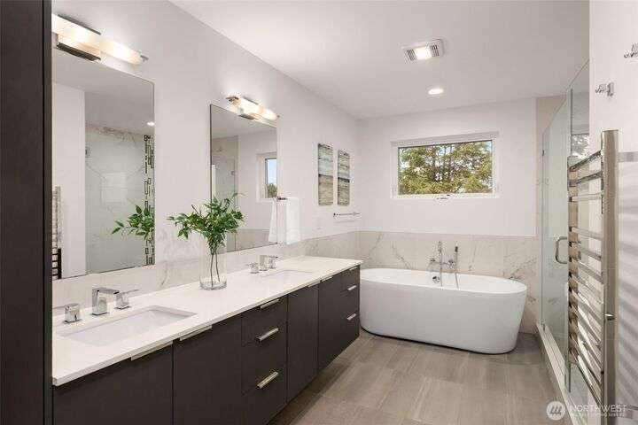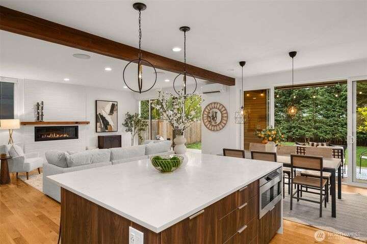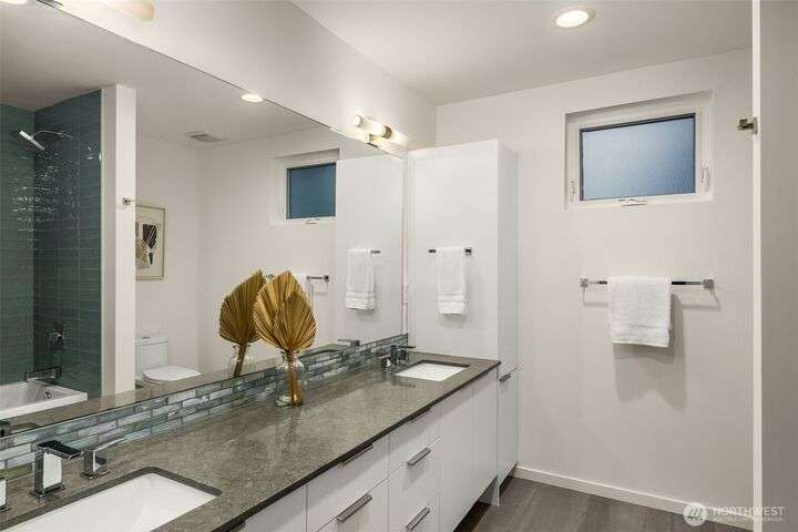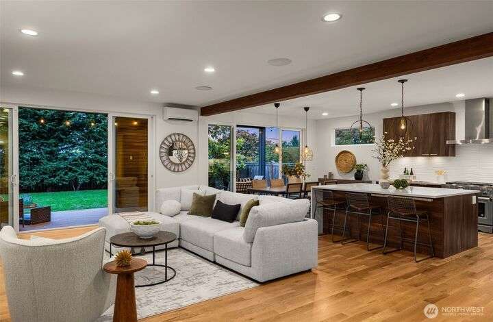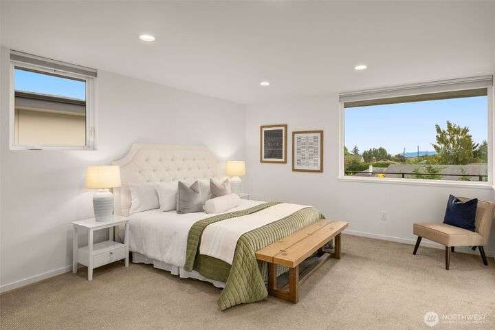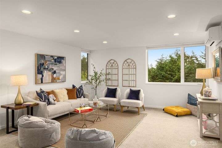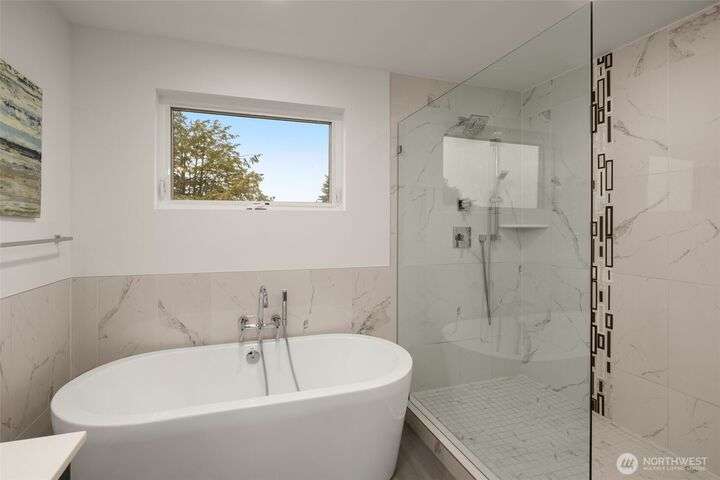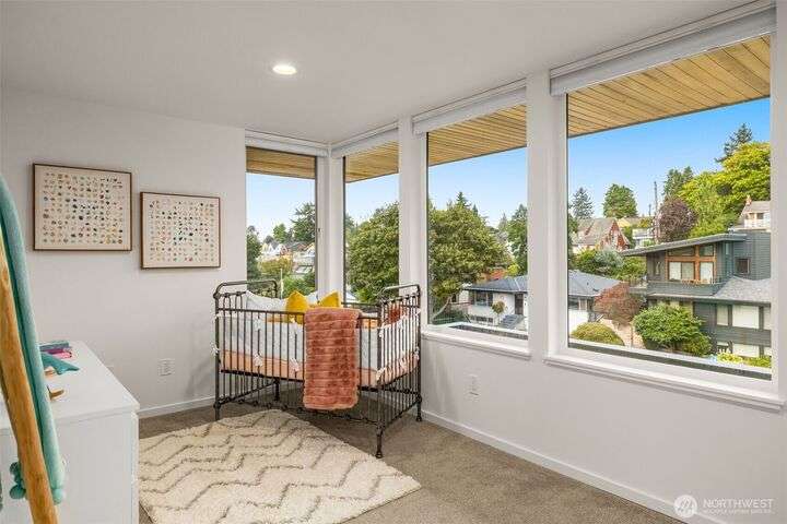 Sophisticated modern living in the heart of North Admiral. This architectural gem showcases an open layout, high ceilings, & oversized windows that bathe each room in natural light. The spacious floorplan offers 4 bedrooms, dedicated office, second great room, & flex space, providing exceptional versatility. A striking kitchen with expansive island anchors the main level, designed for daily living and elegant entertaining. Floor-to-ceiling slider doors open to a lush, fenced backyard for seamless indoor-outdoor living. The primary suite w/ roof deck captivates with sweeping views of Puget Sound & Olympic Mountains. Perfectly positioned near Admiral’s vibrant cafes & shops, this home is a rare blend of refined design, comfort, & location.