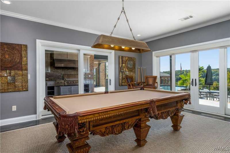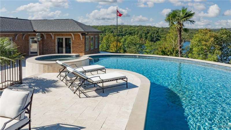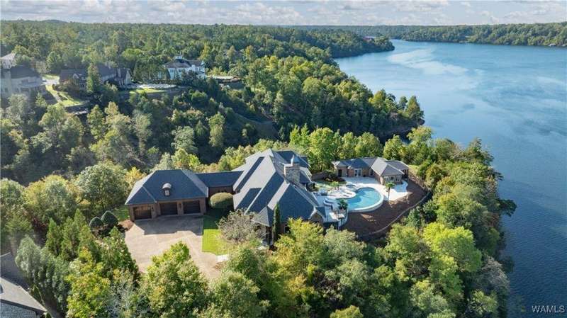 Welcome to this stunning lakefront estate, nestled on 2+ acres with breathtaking views of Lake Tuscaloosa. This exquisite home is crafted for luxury, comfort and entertaining. Step inside to discover a sun-laden interior, highlighted by a gourmet kitchen. Equipped with high-end appliances, custom cabinetry, and a large island, its perfect for any occasion. The open-concept layout seamlessly flows into the living and dining areas, offering stunning views of the water from every angle. For entertainment, this home offers a media room along with a spacious game lounge and secondary kitchen. Wine lovers will appreciate the wine cellar. Outdoors enjoy the sparkling pool, outdoor kitchen and entertain guests on one of the many patio areas surrounded by lush landscaping. Situated steps from the main home is a fully equipped one bedroom guest home. Dont miss your chance to own this one-of-a-kind retreat.