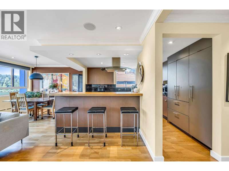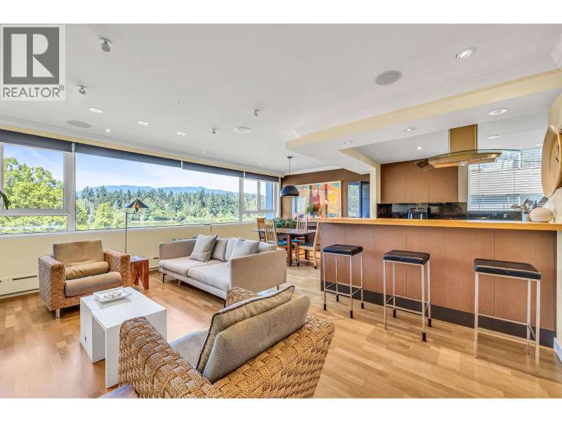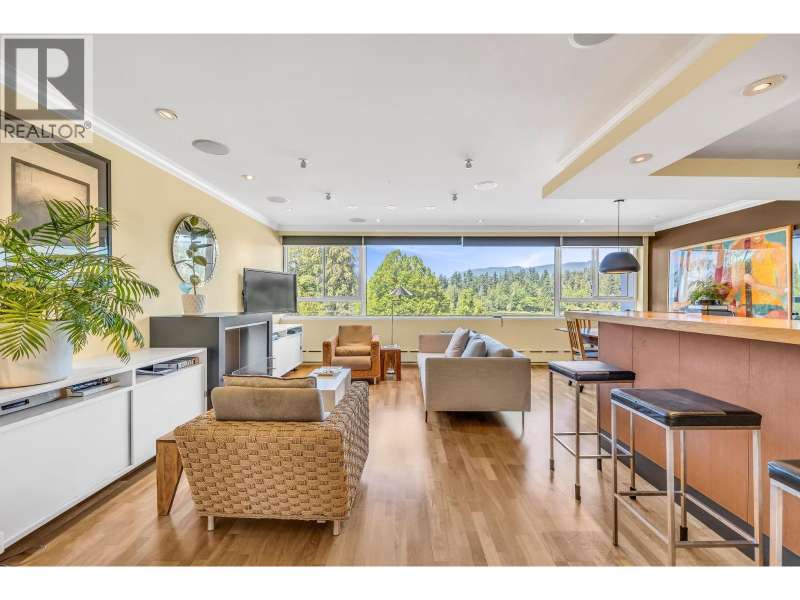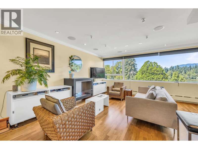 Gorgeous & tranquil forever water & mountain views. Perched on the edge of Stanley Park with Lost Lagoon, tennis courts, walking trails & bike paths right at your door. Windows on 4 sides of this bright SECOND floor CORNER suite. Fully renovated, this home feats an open plan kitchen/living/diving w scenic views through the wall-to-wall 'picture window´ (Double Glazed). The XL primary bedroom doubles as an office/yoga studio, with an en-suite bathroom and walk-in shower. This down-sizers dream will fit all housesized furnature and includes in-site laundry (rare in Co-ops). Common rooftop deck with 270 views. Shops nearby. Plenty of visitor parking. 1 storage, 1 indoor secure parking. 19+. BONUS: NO rentals or Pets. Taxes included in fees. EASY to show with App (id:58403)