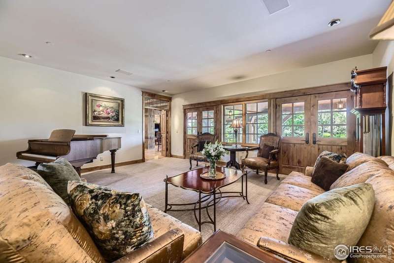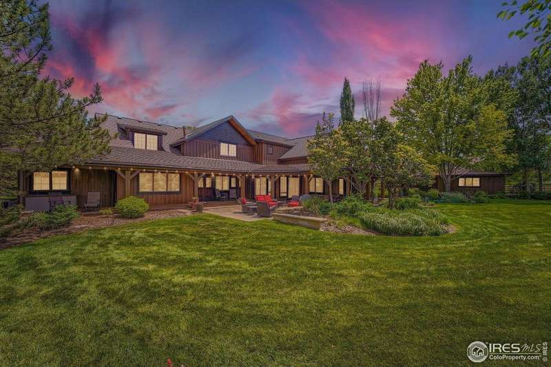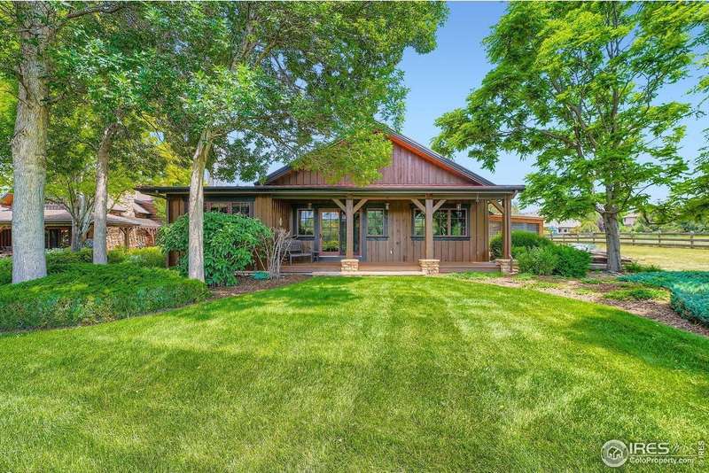 Timeless Design, Sweeping Views, and Unmatched Privacy - Welcome to 8576 Niwot Meadow Farm Road, an exceptional custom estate at the end of a private drive on nearly 3 acres, surrounded on three sides by over 40 acres of permanent open space. Just a 10-minute walk to downtown Niwot via scenic trails, this 5-bedroom, 5 full bath + 3 powder room residence offers over 7,700 finished square feet of refined living with wide hallways, soaring ceilings, and custom finishes throughout. The main level features a sunlit great room with stone fireplace, elegant dining areas, a richly appointed library, and a chef's kitchen with premium appliances, large island, and butler's pantry. The main-level private suite includes a fireplace, spa-style bath, a single walk-in closet with dual access, and direct access to the rear deck. A separate guest suite on the opposite side of the main level ensures comfort and privacy. Upstairs includes en suite bedrooms with walk-in closets and a flexible bonus room that can be closed off. The finished lower level adds a large recreation room, wine cellar, and storage. The detached barn-style structure-originally designed as a professional workspace-includes a kitchenette, meeting room, office, powder room, hickory flooring, flat ceilings, and a covered private deck. While not built for overnight guests, the space has future potential for guest or multi-generational living. The barn includes a 2.5-car garage; the main home features an oversized 2-car garage. Manicured landscaping, mahogany decks with electric shades, and space for a pool or sport court complete this private haven in one of Niwot's most picturesque and prestigious neighborhoods.