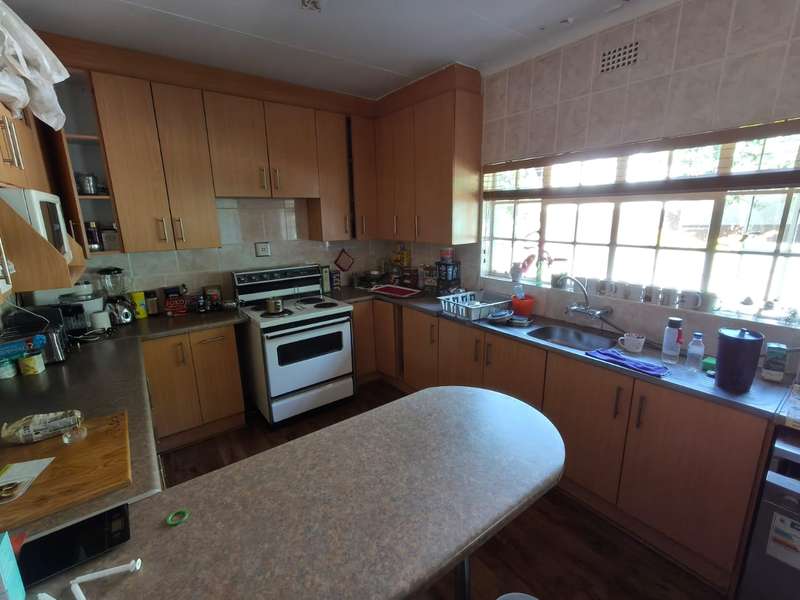 This property has a land size of 1360m² The house has 4 Bedrooms, 2 Bathrooms, a Lounge, Dining Area, private Study, Kitchen and Laundry. The property has a Double Garage, 6 Carports, Patio with Built-in Braai and a domestic outside Toilet. The property has a large sparkling Swimming Pool with outside braai area. The property also has a 7kva Generator, 2 Jojo Tanks with pressure Pump and the property also has a Borehole. Call us today to make this your home!