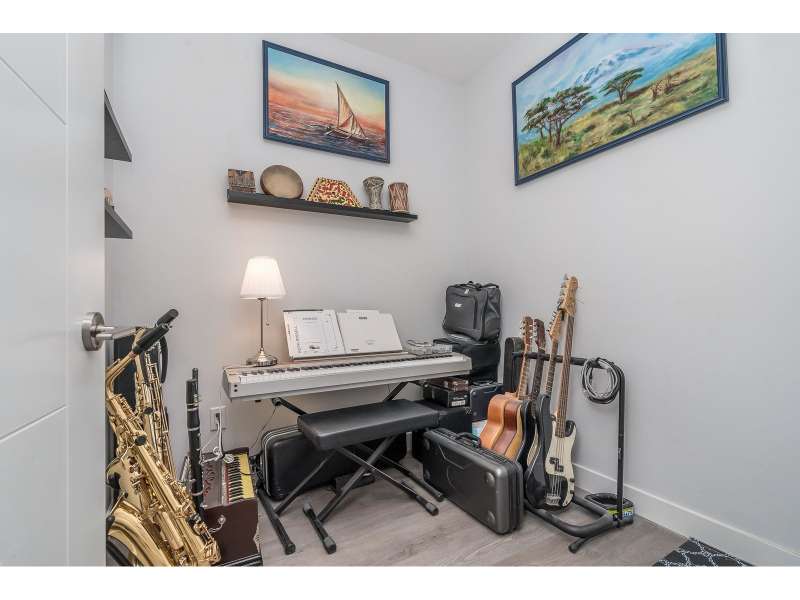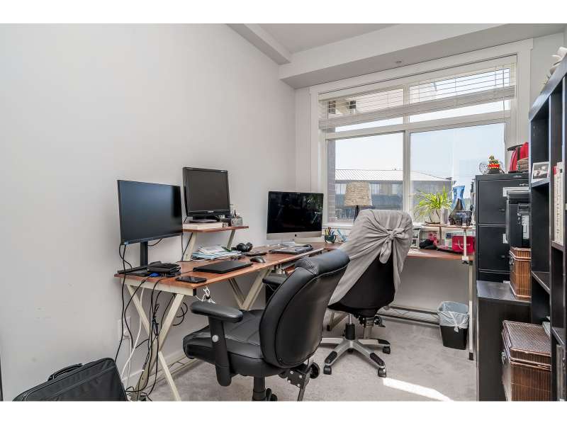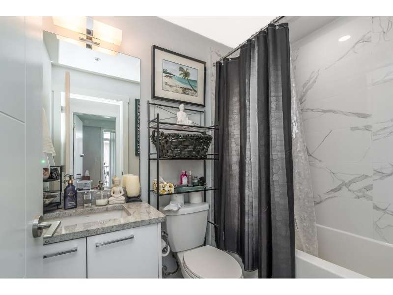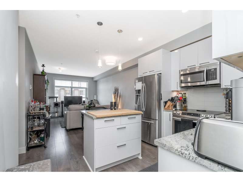 Welcome to "The Georgia" by Whitetail Homes-this spectacular 2 Bed + Den, 2 Bath corner unit is only a few blocks to the future Skytrain! Featuring 9' ceilings, an open concept layout, and top-tier finishes including granite counters, stainless steel appliances, and high-quality laminate throughout. The Den is perfect for a home office or extra storage. The spacious primary bedroom offers a walk-in closet, ensuite with double sinks, and A/C. Pet friendly building includes 1 parking, 1 locker and access to bike storage and EV charging. All this in a prime location-close to shopping, restaurants, and schools. A must-see! (id:58403)