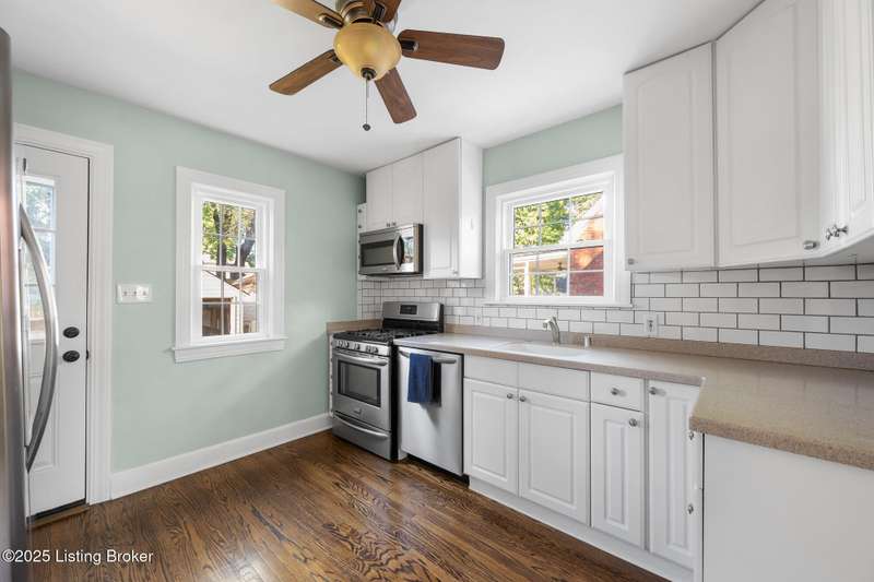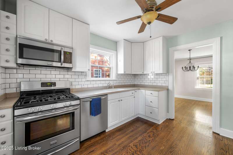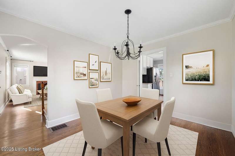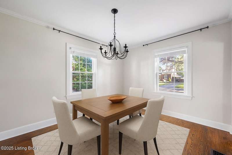 Impeccably maintained and updated brick cape cod in the heart of Saint Matthews on a quiet, tree lined street. Commanding presence from the front, with paver patio sidewalk, porch and garden beds, updated roof (main roof 2015, garage 2021) and replacement windows. Light-filled living room with refinished hardwood floors, crown molding and fireplace. Formal dining room adjacent to kitchen and living room, perfect for entertaining. Updated kitchen with newer appliances, subway tile backsplash, and new main and storm door (2025) leading to an expansive deck. A generous sized bedroom and powder room round out this floor. On the 2nd floor you'll find two bedrooms, with endless storage, and a tiled full bath. The finished lower level includes an area perfect for workout area or office, a separate family room or guest suite, as there is an additional full bath adjacent. Large fenced in backyard and one-car garage in the rear of the property. With many recent updates, including one-year old HVAC, this home is immaculate and truly turn-key. Schedule your private showing today.
