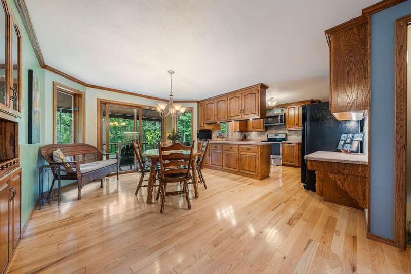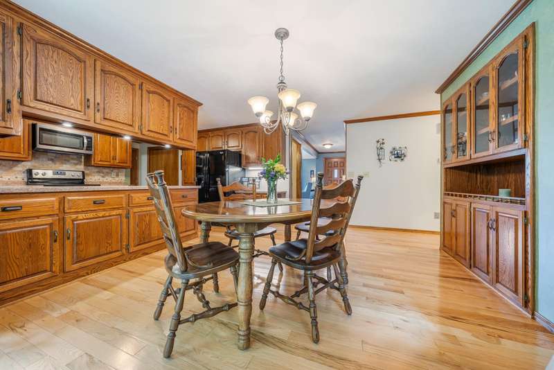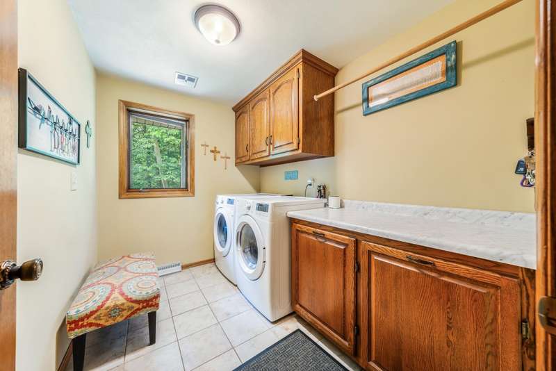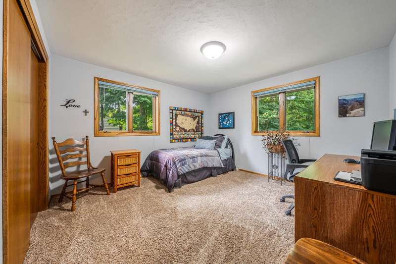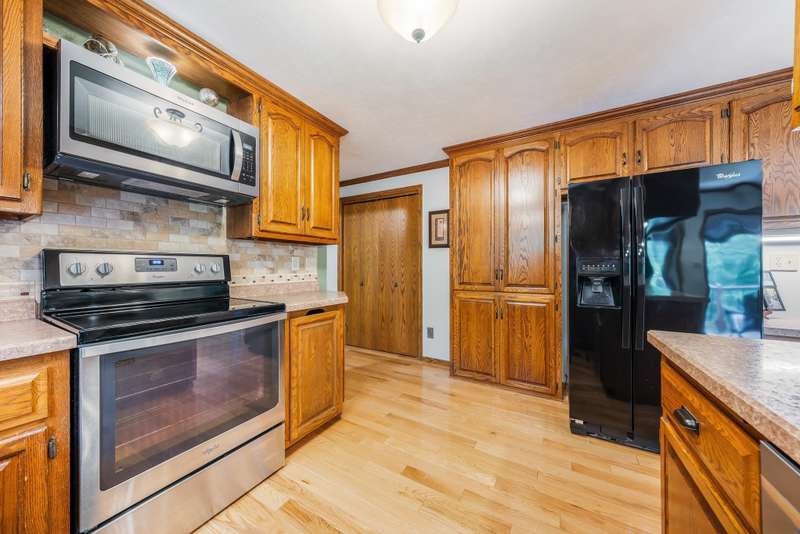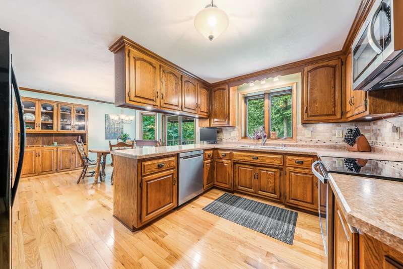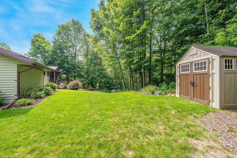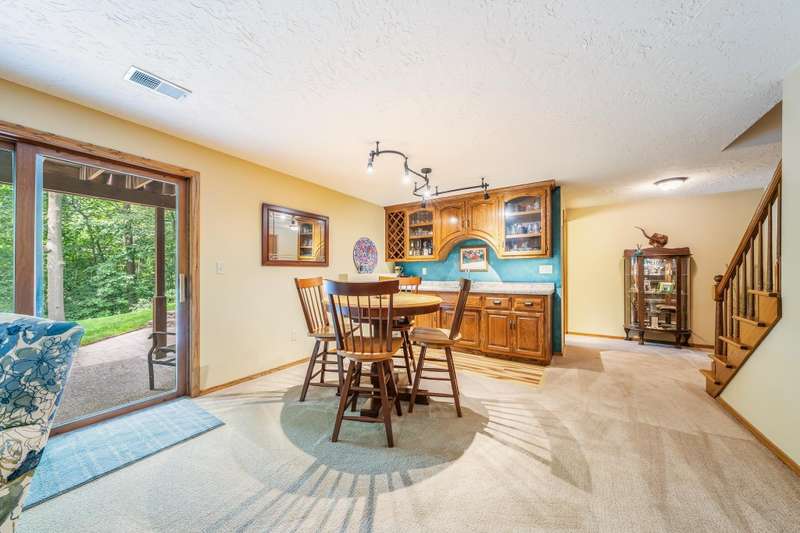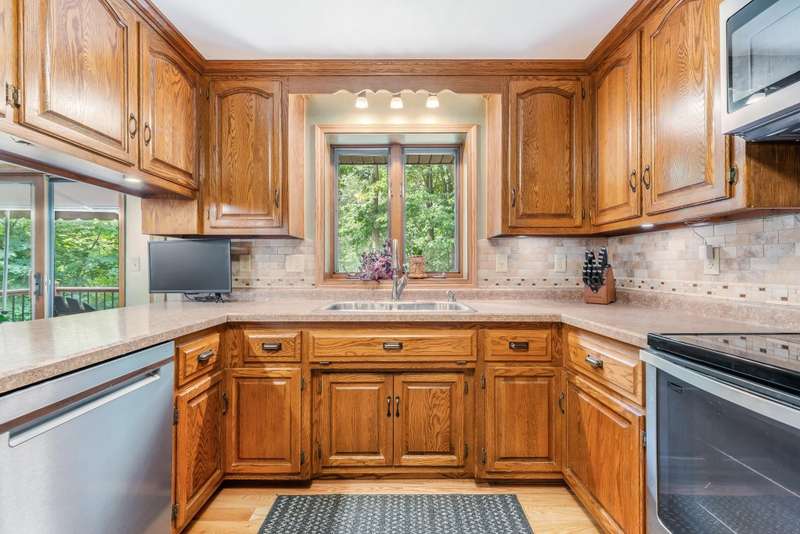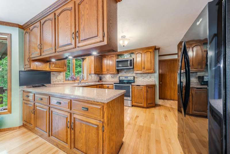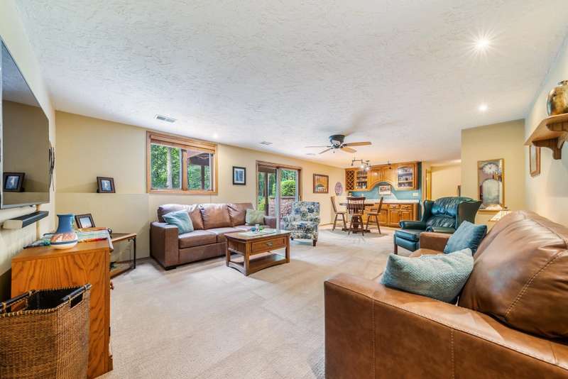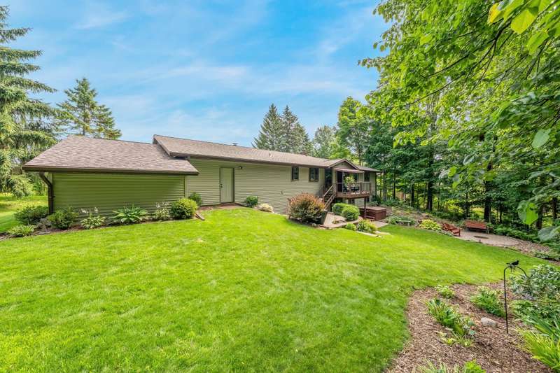 The feel of living up north with the convenience of city living. Serene 0.95-acre wooded lot with ravine boasts this walk-out ranch featuring vaulted ceiling in LR, primary suite with walk-in closet, extra deep pantry, lots of cabinets in the kitchen which overlooks the three-level deck and wooded back yard. Family room, wet bar and third full bath in walk-out lower level. Attached three car garage. New roof, vinyl siding and much more.