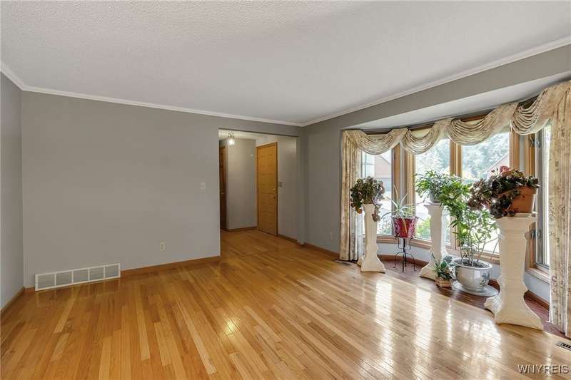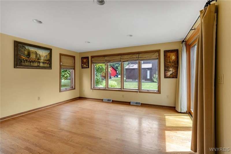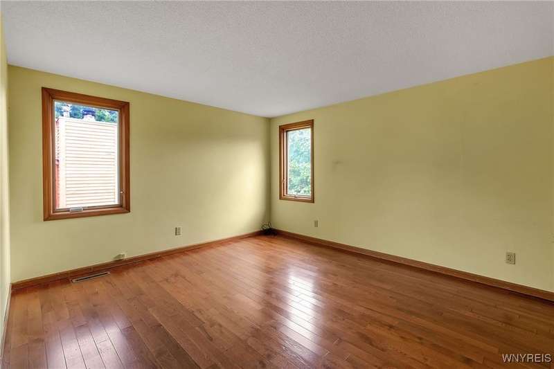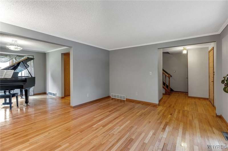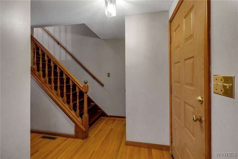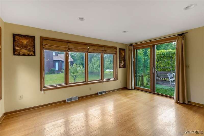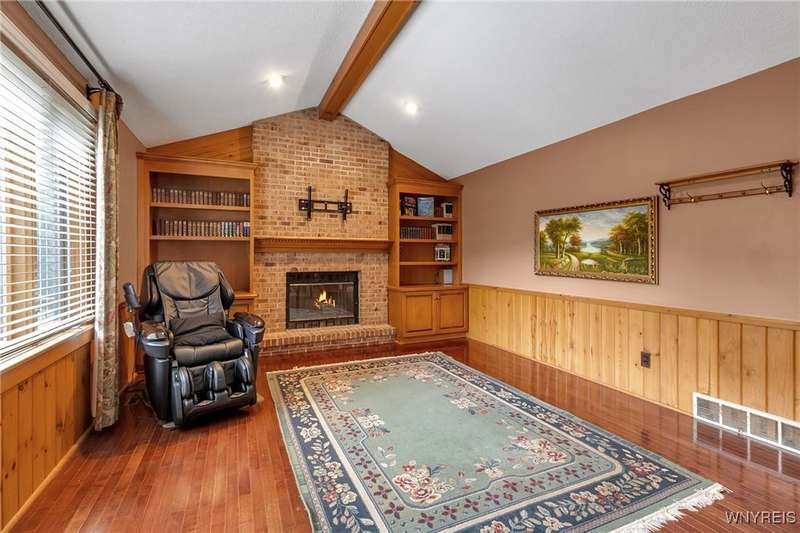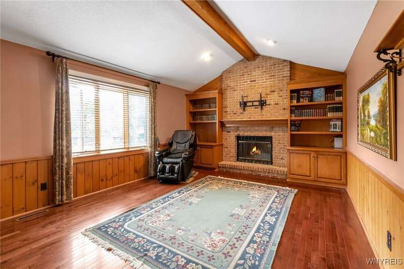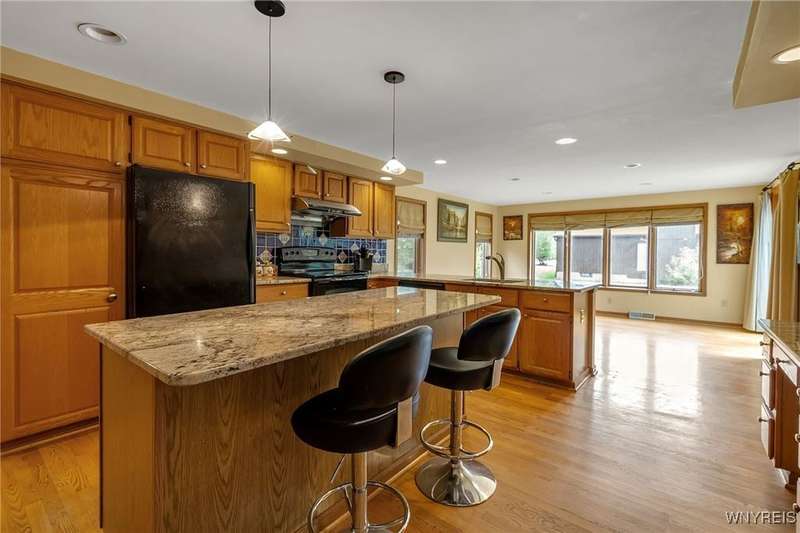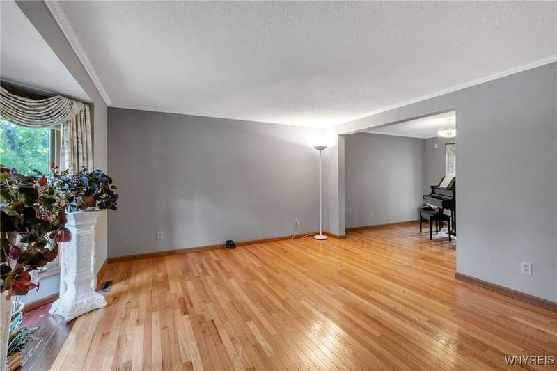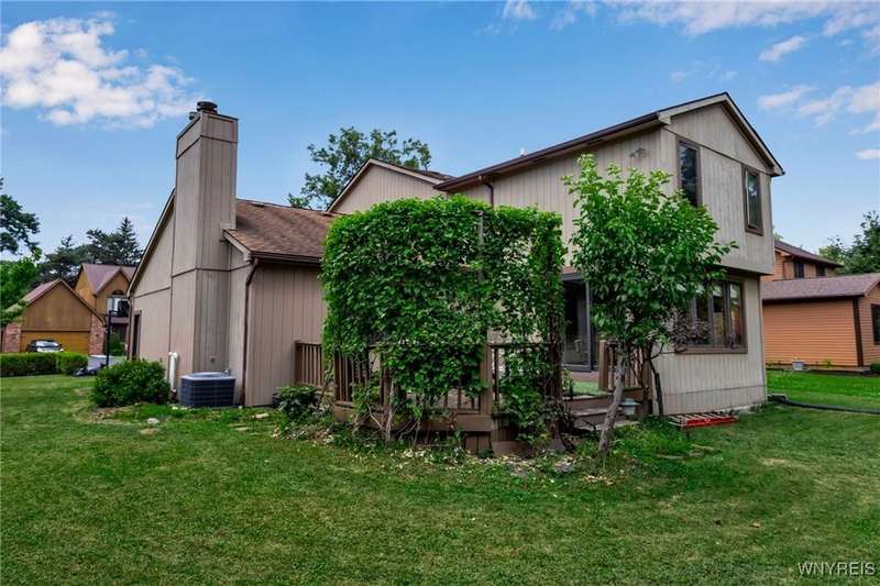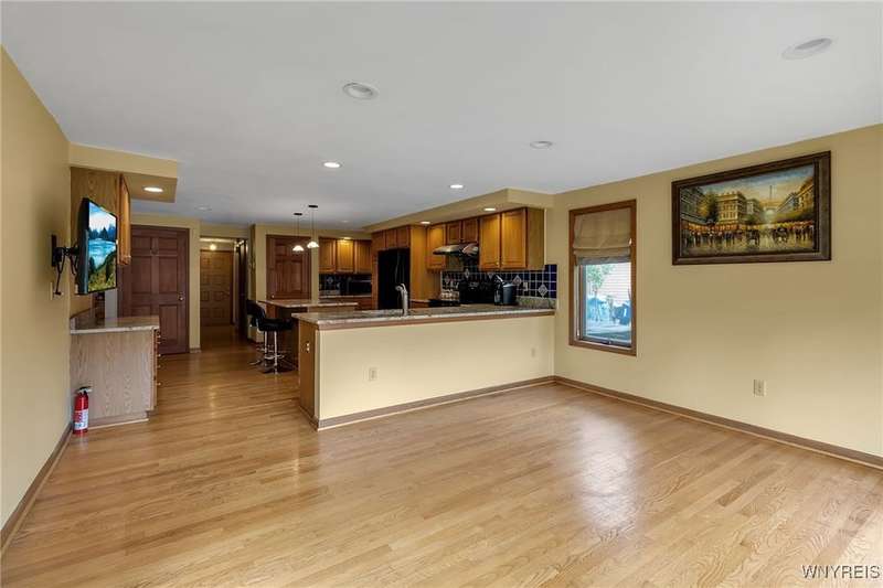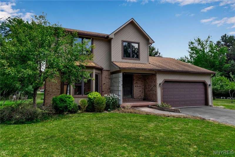 This 4-bedroom, 2.5-bath home is located in a wonderful location near the University at Buffalo North and the 990, providing easy access to the city and all suburbs in Western New York! The home features hardwood floors throughout most of the first and second floors. The cozy family room boasts a cathedral ceiling, a fireplace flanked by bookshelves, and is conveniently located off the spacious kitchen. The kitchen is equipped with granite countertops, includes all appliances, a breakfast bar, and a large dining area surrounded by windows and enhanced with recessed lighting. The formal living and dining rooms are filled with natural light and also feature hardwood floors. On the second floor, you'll find a private ensuite with an updated full bath that includes a double vanity with granite countertops and newer faucets, along with a walk-in closet. Additionally, three nicely-sized bedrooms complete the second level. The basement offers a partially finished rec room with luxury vinyl flooring and a laundry room area. Recent updates include a newer furnace and air conditioning system, approximately 3 years old. The property also features a two-car attached garage and a double-wide driveway. Other highlights include solid 6-panel doors and blinds on most windows, along with a conveniently located half bath off the foyer. This home is located in the highly rated Williamsville School District!