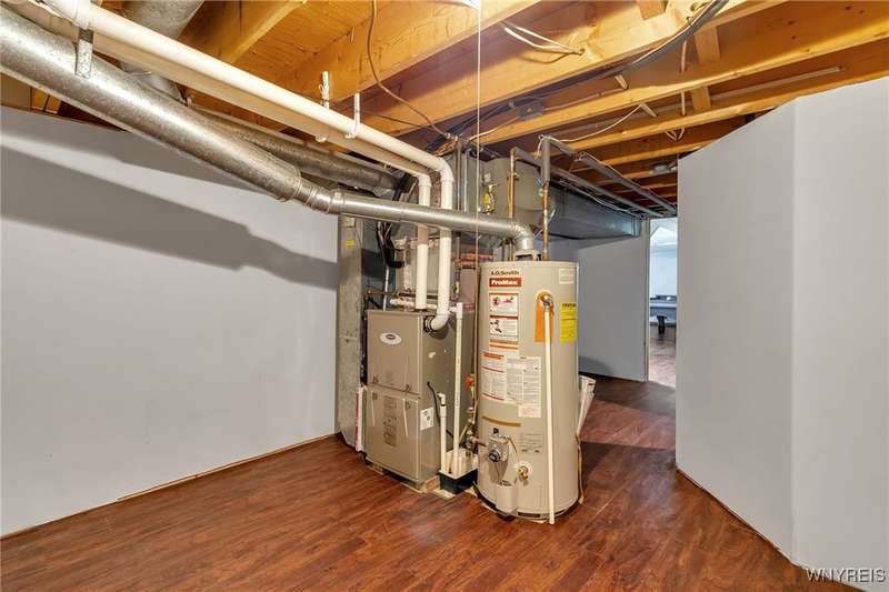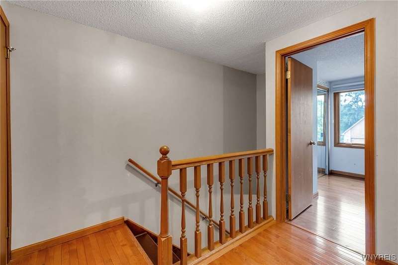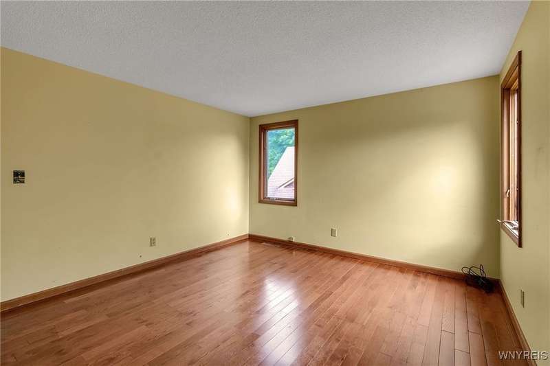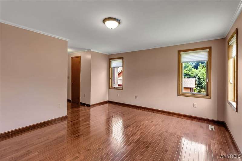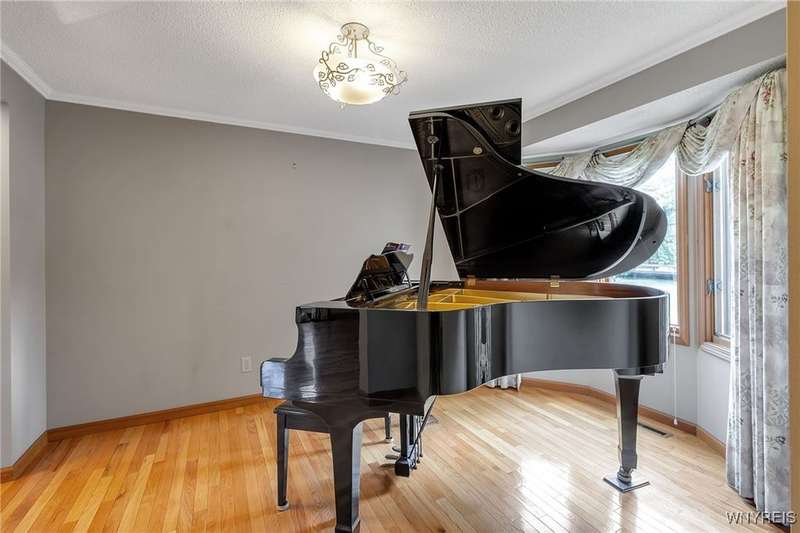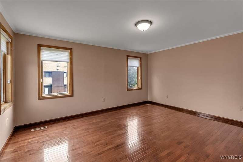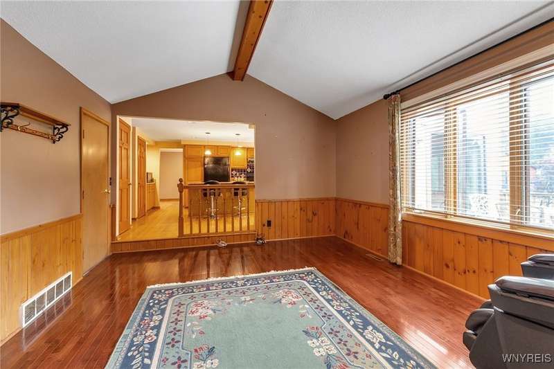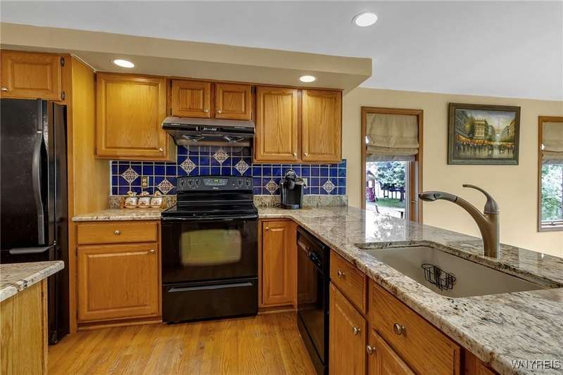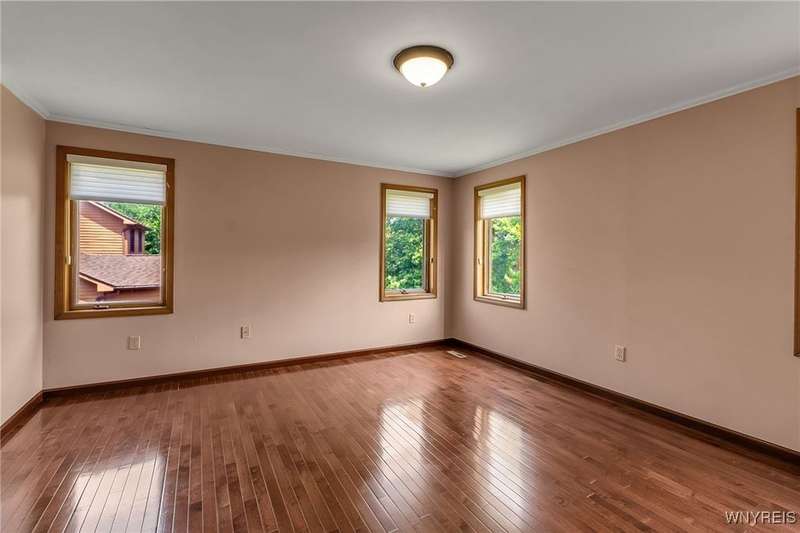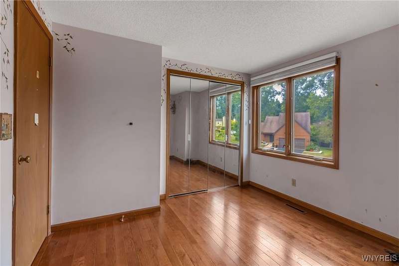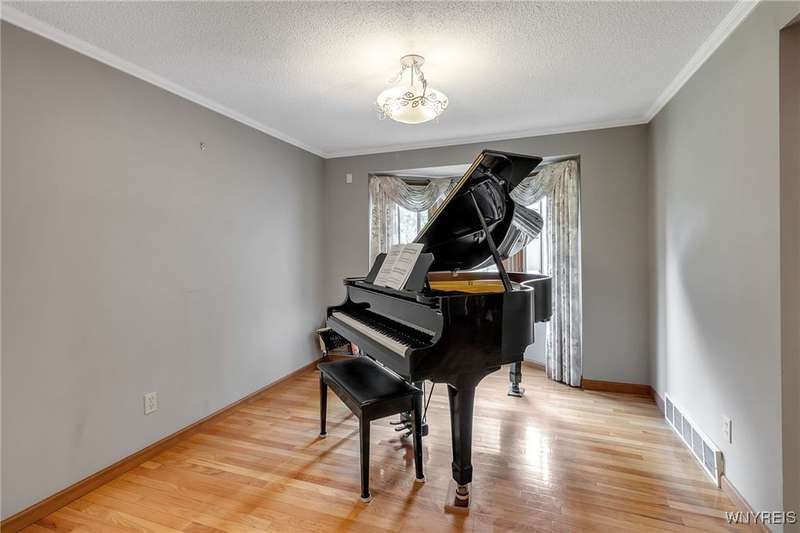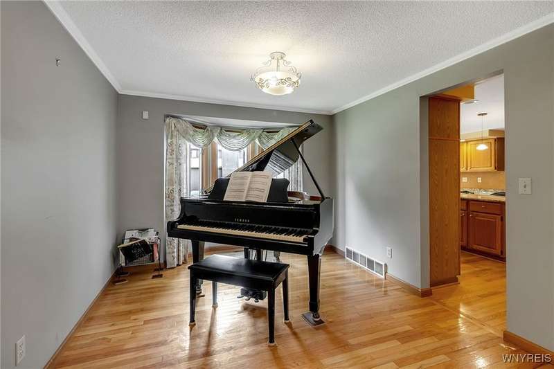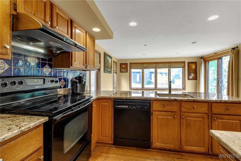 This 4-bedroom, 2.5-bath home is located in a wonderful location near the University at Buffalo North and the 990, providing easy access to the city and all suburbs in Western New York! The home features hardwood floors throughout most of the first and second floors. The cozy family room boasts a cathedral ceiling, a fireplace flanked by bookshelves, and is conveniently located off the spacious kitchen. The kitchen is equipped with granite countertops, includes all appliances, a breakfast bar, and a large dining area surrounded by windows and enhanced with recessed lighting. The formal living and dining rooms are filled with natural light and also feature hardwood floors. On the second floor, you'll find a private ensuite with an updated full bath that includes a double vanity with granite countertops and newer faucets, along with a walk-in closet. Additionally, three nicely-sized bedrooms complete the second level. The basement offers a partially finished rec room with luxury vinyl flooring and a laundry room area. Recent updates include a newer furnace and air conditioning system, approximately 3 years old. The property also features a two-car attached garage and a double-wide driveway. Other highlights include solid 6-panel doors and blinds on most windows, along with a conveniently located half bath off the foyer. This home is located in the highly rated Williamsville School District!
