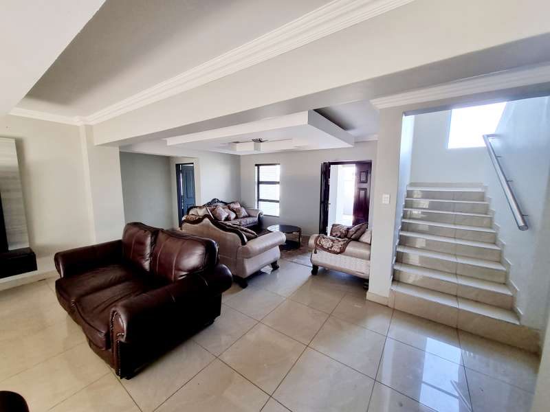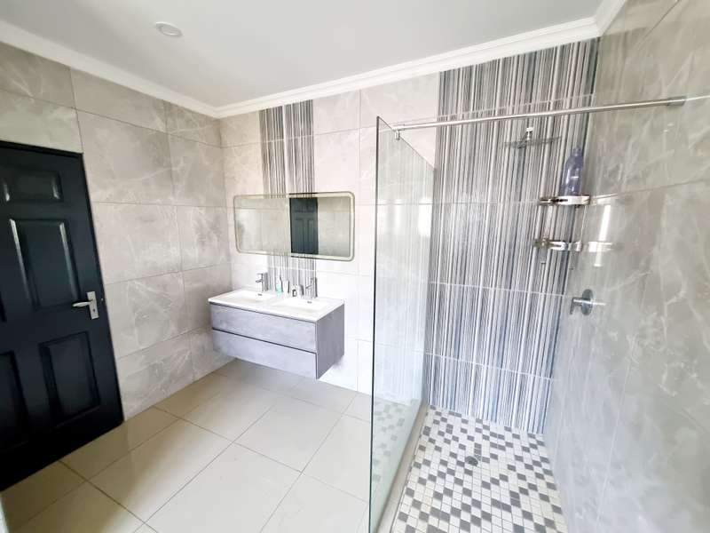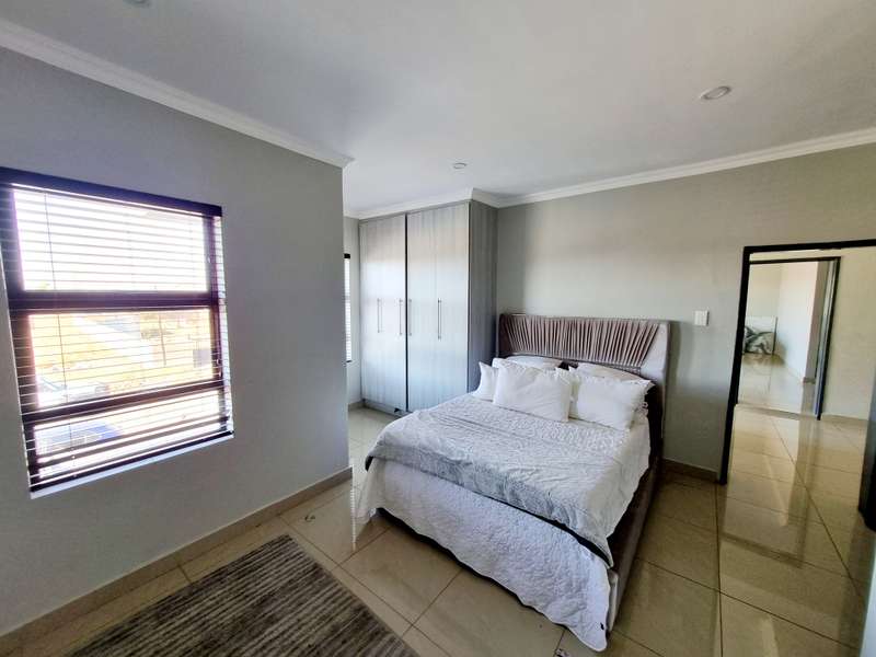 Experience luxurious living in this upmarket 5-bedroom, 4-bathroom home! The highlight is the expansive main bedroom upstairs, boasting a private balcony, ensuite bathroom, and walk-in closet. Enjoy seamless indoor-outdoor living with a spacious lounge, dining room, and kitchen that opens to a patio and braai area. The kitchen includes a separate scullery, and the lounge is equipped with air conditioning. The property includes a double garage, electric fencing, 2500-liter JoJo tank with pump and a neatly paved yard with dual street entrances. Don't miss out on this exceptional property! Contact us today to schedule an appointment to view.