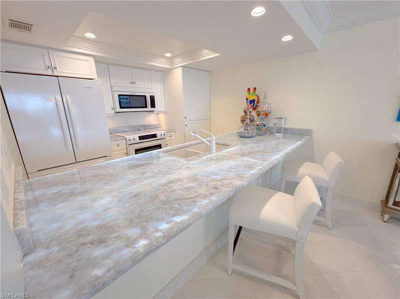 The Perfect Beach Get Away! Open your sliding doors and windows and let the warm, coastal fresh air in! This 2 bedroom/2 bathroom, unfurnished condo is situated in the highly sought after Sanibel Harbour Towers and includes many upgrades. In 2024 New Hurricane windows were installed, a new Washer and Dryer installed, a new water heater was installed, A/C was just installed in 2021 and Hurricane Impact sliding door in 2014. Through the front door you are greeted by luxurious marble flooring that flows through the entire condo, beautiful crown molding in main living areas and bedrooms, a fantastic light monochromatic theme providing the perfect base to showcase you personal design style & pieces. The Living room has been expanded by converting lanai to living space and showcasing the stunning gulf/bay water views. The kitchen is sleek featuring Quartzite counters and undermount counter lighting. The primary suite is spacious and boast picturesque views and large ensuite with spacious walk in shower. Both bedrooms closets offer drawer/shelve organizing systems and the guest bathroom has tub/shower combo. You will enjoy the added piece of mind with Motorized rolldown shades in living area and plantation shutters in the bedrooms. Sanibel Harbour Towers offers resort style living with its own beautiful pool or walk next door to the Marriott and enjoy several restaurants and bars and Dinner Yacht Cruise ship! Marriott also offers a discounted membership to Sanibel Harbour Towers owners so you can enjoy their Spa & Fitness facilities, Tennis courts and Pool! EXCELLENT SEASONAL OR YEAR ROUND RESIDENCE or GREAT POTENTIAL RENTAL!