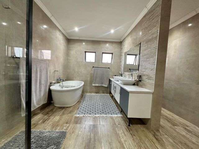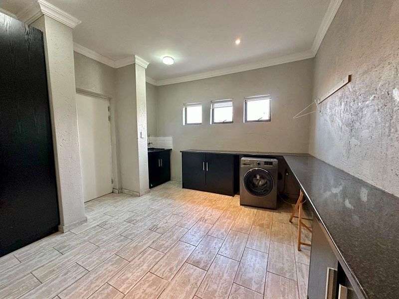 6 MONTHS EXCLUSIVE MANDATE !!!!! Step into luxury living with this stunning seven-bedroom home, perfectly situated in a prestigious 24-hour security estate. From the moment you enter, you are welcomed by a beautifully designed lounge that sets the tone for the elegance throughout the property. The spacious kitchen is a true chef’s delight, seamlessly positioned across from a stylish dining room. Adjacent to the dining area is a cozy reading nook, ideal for unwinding with your favorite book. The entertainment wing of the home features a sophisticated bar, an additional lounge, and a convenient guest toilet. On the other side of the ground floor lies the first bedroom, complete with its own walk-in closet and private bathroom, along with an extra restroom for guests. Upstairs, you are greeted by a generous office that connects directly to the luxurious master suite. This master bedroom offers a grand walk-in closet and an expansive bathroom. The upper level also includes four additional bedrooms and a fully equipped gym room, perfect for a modern family’s lifestyle needs. Beyond the main house, staff quarters ensure added convenience, while a sparkling swimming pool and three-car garage provide the ultimate in comfort and practicality. Residents of the estate enjoy access to an exclusive clubhouse as well as sports courts, enhancing the community’s vibrant lifestyle. This property combines space, style, and security—ideal for a discerning buyer looking for a truly exceptional home.