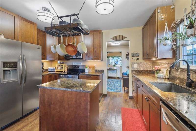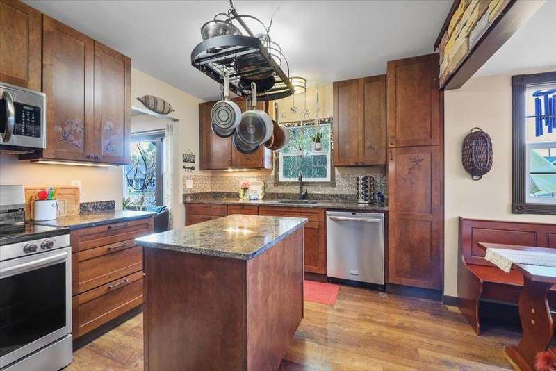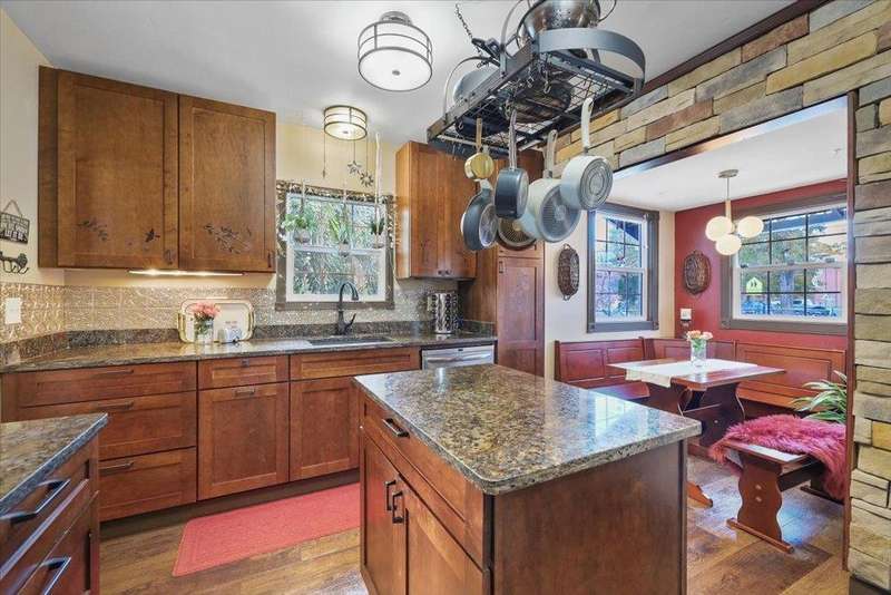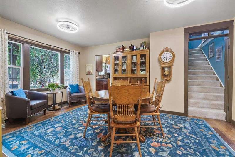 This charming 1926 1½ story Craftsman is nestled just a stroll from many local shops & restaurants, combining vintage character w/ modern peace of mind. A functional & thoughtfully laid out floor plan features an inviting living room w/ gas FP, 4BDs/2BAs, formal dining & sunroom providing comfortable & practical living. The Brazilian walnut wood floors gleam w/ sophistication, guiding you thru rooms adorned w/ tasteful period details. The cooks dream kitchen has contemporary convenience w/ granite counters, center island, high end cabinetry & stainless appliances w/out sacrificing its timeless appeal. The backyard offers an expansive updated deck, mature landscaping w/ rose and blackberry bushes & accent lighting. The fenced back yard offers a perfect spot for morning coffee, a serene, private retreat while enjoying the water feature. The 3 car garage fits a full size truck, a workshop area, loft storage and RV cleanout. Its prime location offers easy access to shopping, dining & recreation. NEW roof coming!