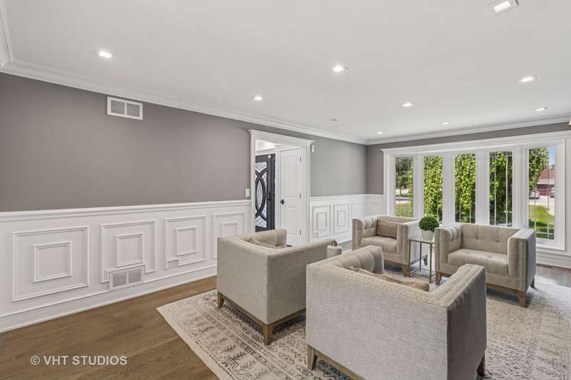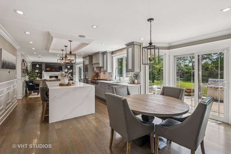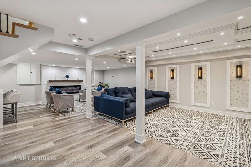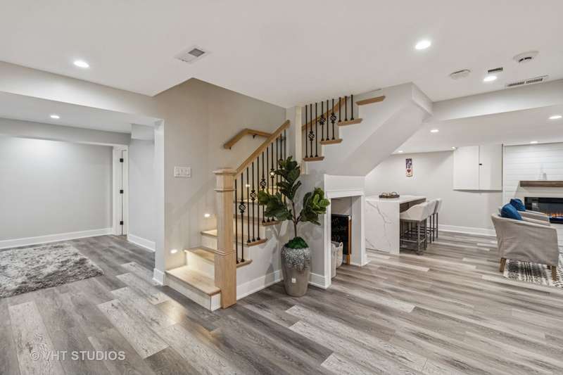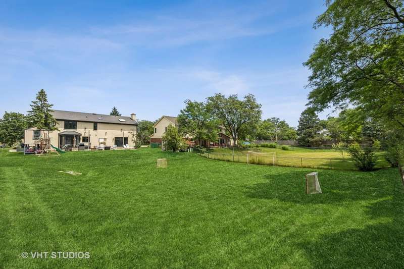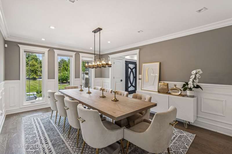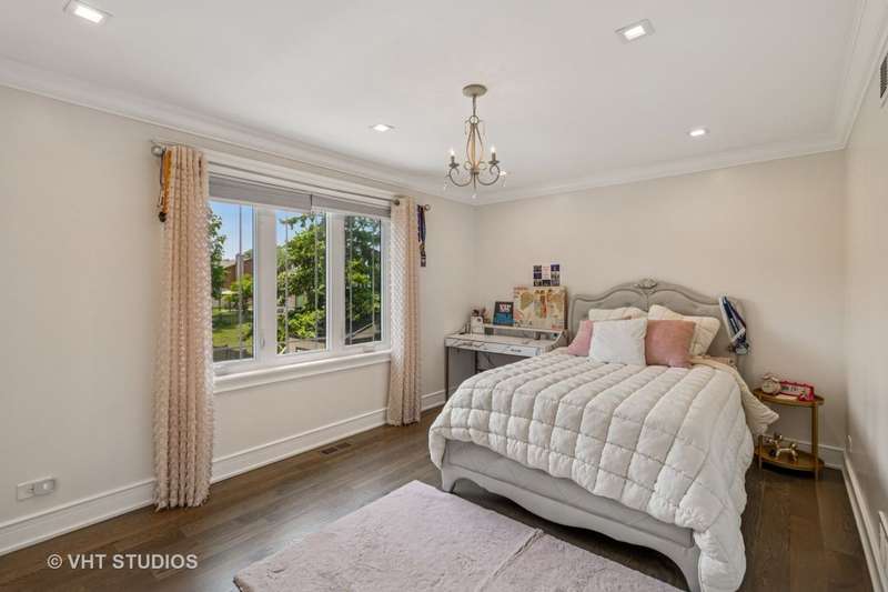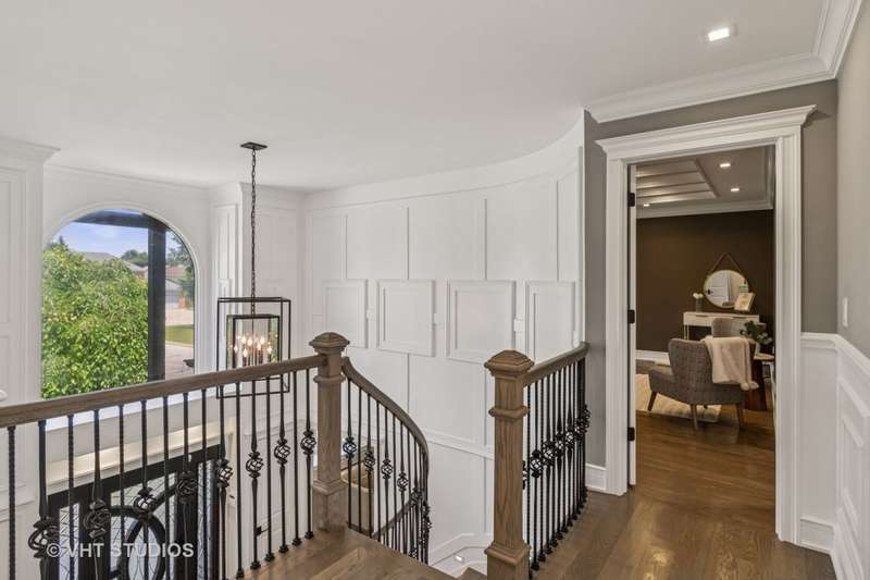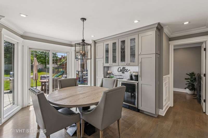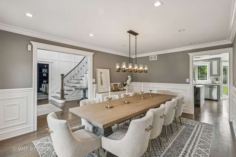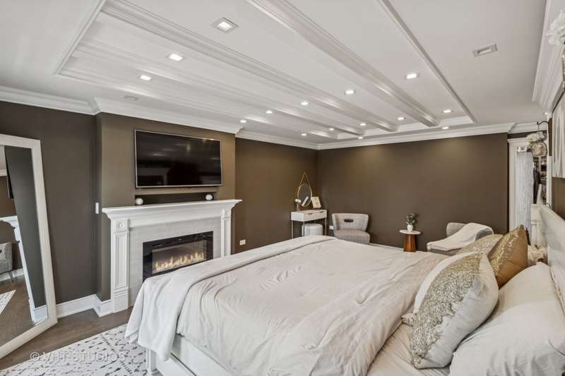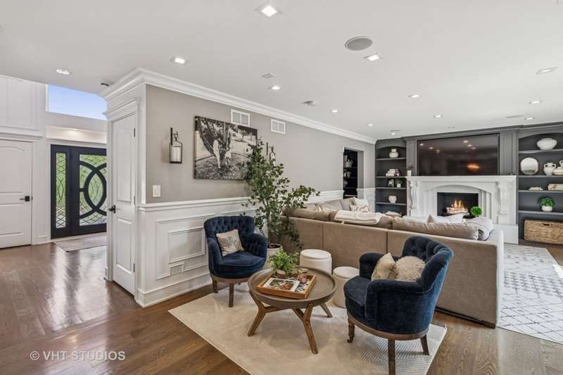 Stunning All-Brick Colonial in Prime Glenview Location Contemporary Elegance Meets Classic Charm. Nestled on nearly a half-acre in a quiet cul-de-sac, this completely renovated 2-story brick colonial offers an extraordinary blend of timeless architecture and striking contemporary design. From the moment you arrive, the beautifully landscaped front yard, brick walkway, and charming front patio set the tone for what's inside. Step into a grand entry foyer featuring a dramatic bridal staircase, flanked by sophisticated formal living and dining spaces adorned with custom built-ins, crown molding, and wainscoting. Gleaming hardwood floors flow throughout the home, complemented by designer light fixtures and upscale finishes at every turn. The heart of the home is the spectacular chef's kitchen equipped with a large island, quartz countertops, Sub-Zero refrigerator, high-end Wolf appliances, walk-in pantry, and a sleek coffee bar. Sunlight pours through expansive windows and a sliding glass door that opens to the backyard. The open layout connects seamlessly to the family room, complete with a custom fireplace, built-in shelving, and a second slider to the outdoor living space, perfect for everyday comfort and effortless entertaining. A versatile first-floor bedroom or office, a stylish half bath, and a functional mudroom round out the main level. Upstairs, the primary suite is a luxurious retreat featuring its own fireplace, walk-in closet, private balcony, and a spa-like en suite bath with a double walk-in shower and soaking tub, truly a showstopper. Three additional generously sized bedrooms each offer their own unique charm and share access to a convenient second-floor laundry room. The finished basement is an entertainer's dream, complete with a movie-ready rec room featuring a big screen and projector, a cozy lounge area with fireplace, a wet bar with quartz island and wine fridge, plus a dedicated playroom and a stunning full bath with walk-in shower. Out back, enjoy a spacious patio and a lush backyard oasis, ideal for summer barbecues, relaxing evenings, and year-round enjoyment.