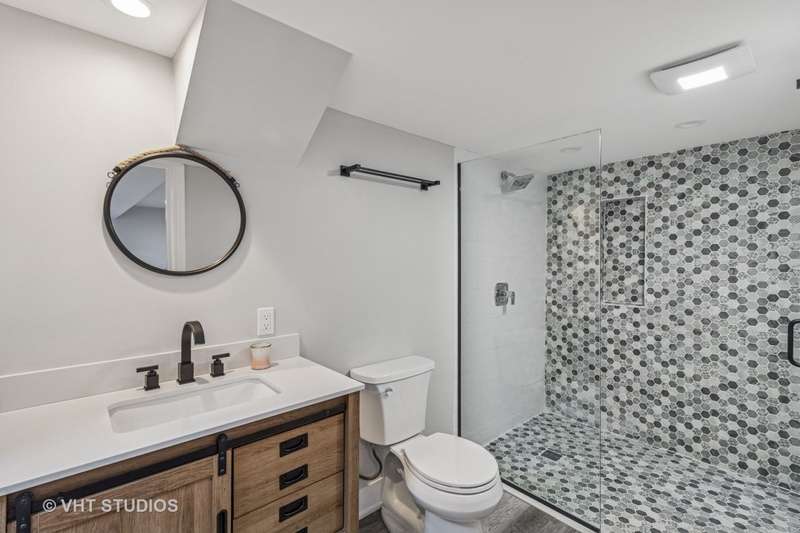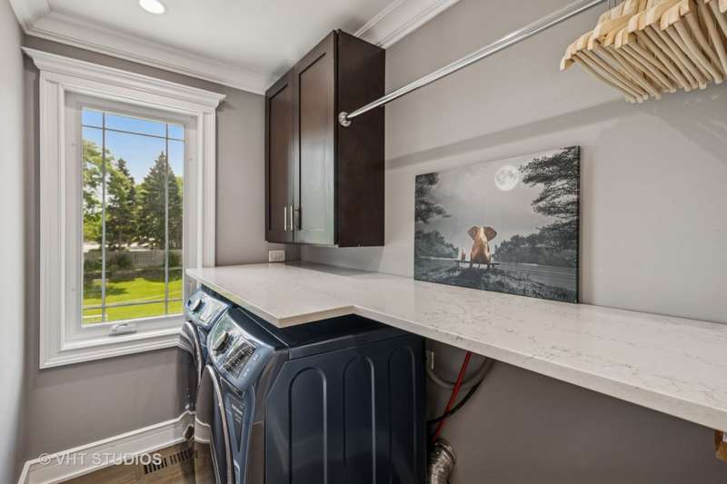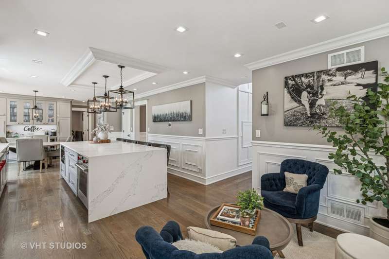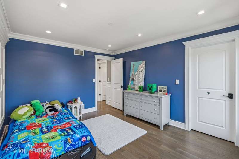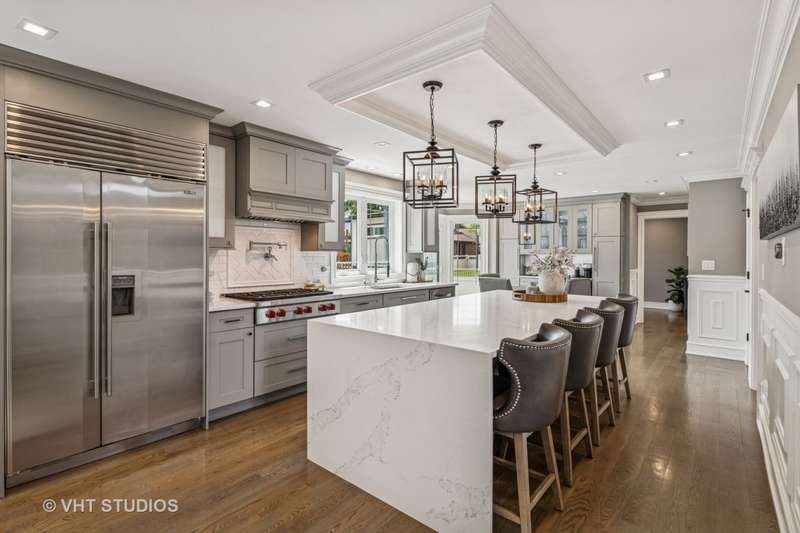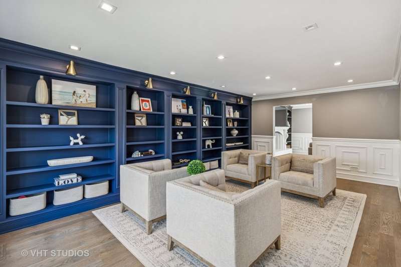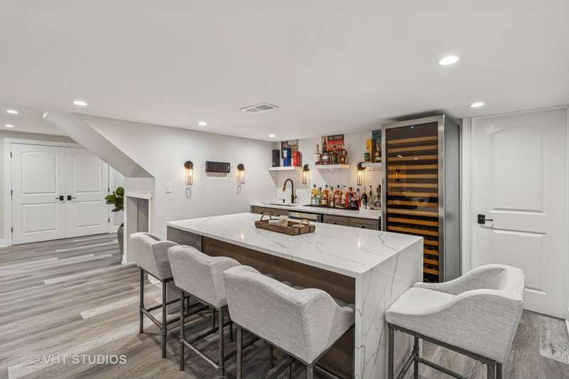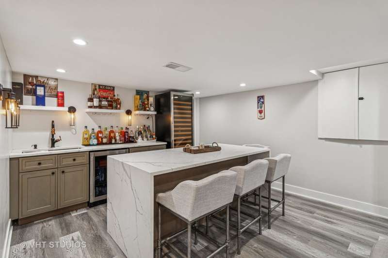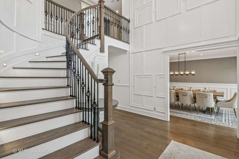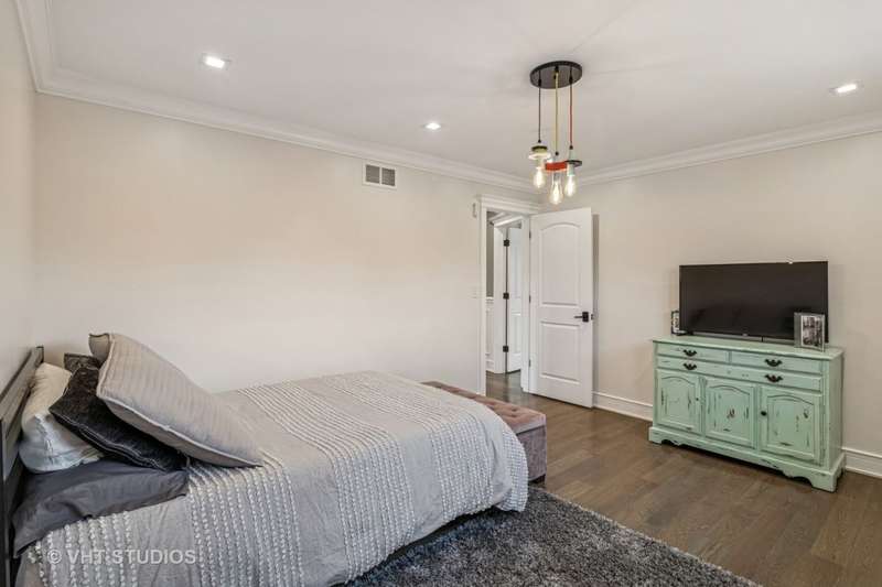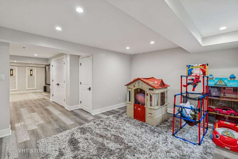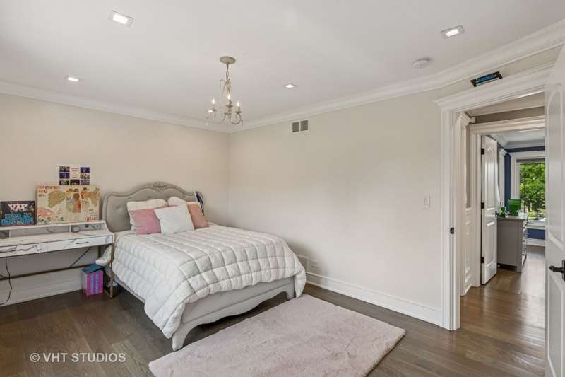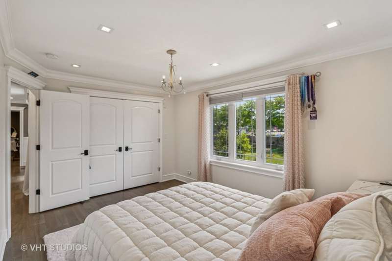Stunning All-Brick Colonial in Prime Glenview Location Contemporary Elegance Meets Classic Charm. Nestled on nearly a half-acre in a quiet cul-de-sac, this completely renovated 2-story brick colonial offers an extraordinary blend of timeless architecture and striking contemporary design. From the moment you arrive, the beautifully landscaped front yard, brick walkway, and charming front patio set the tone for what's inside. Step into a grand entry foyer featuring a dramatic bridal staircase, flanked by sophisticated formal living and dining spaces adorned with custom built-ins, crown molding, and wainscoting. Gleaming hardwood floors flow throughout the home, complemented by designer light fixtures and upscale finishes at every turn. The heart of the home is the spectacular chef's kitchen equipped with a large island, quartz countertops, Sub-Zero refrigerator, high-end Wolf appliances, walk-in pantry, and a sleek coffee bar. Sunlight pours through expansive windows and a sliding glass door that opens to the backyard. The open layout connects seamlessly to the family room, complete with a custom fireplace, built-in shelving, and a second slider to the outdoor living space, perfect for everyday comfort and effortless entertaining. A versatile first-floor bedroom or office, a stylish half bath, and a functional mudroom round out the main level. Upstairs, the primary suite is a luxurious retreat featuring its own fireplace, walk-in closet, private balcony, and a spa-like en suite bath with a double walk-in shower and soaking tub, truly a showstopper. Three additional generously sized bedrooms each offer their own unique charm and share access to a convenient second-floor laundry room. The finished basement is an entertainer's dream, complete with a movie-ready rec room featuring a big screen and projector, a cozy lounge area with fireplace, a wet bar with quartz island and wine fridge, plus a dedicated playroom and a stunning full bath with walk-in shower. Out back, enjoy a spacious patio and a lush backyard oasis, ideal for summer barbecues, relaxing evenings, and year-round enjoyment.