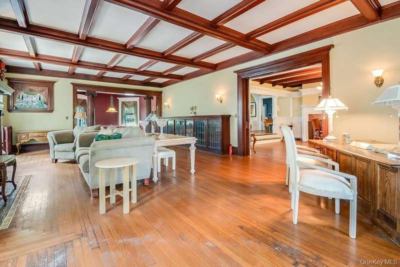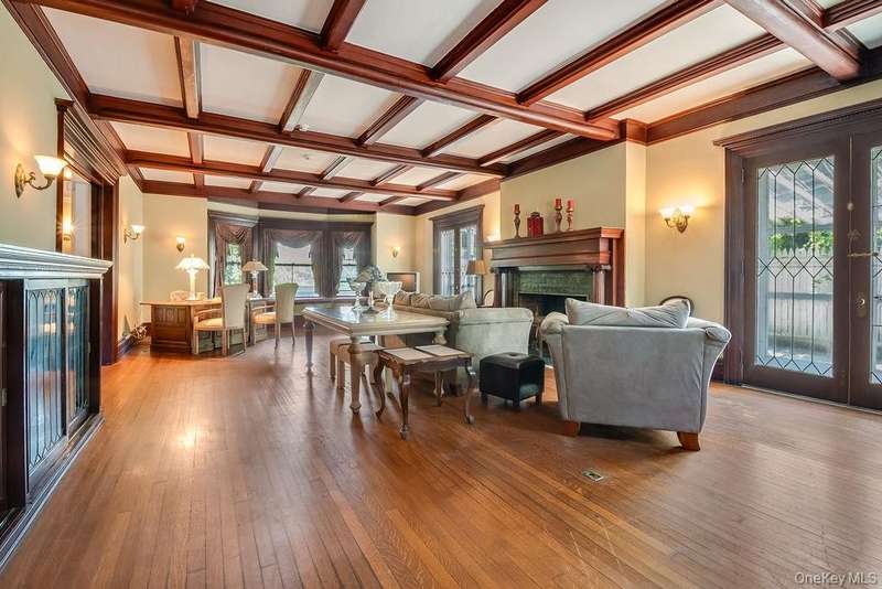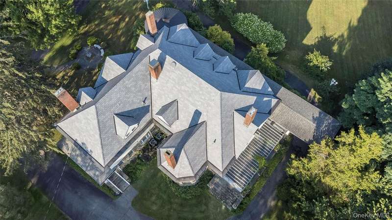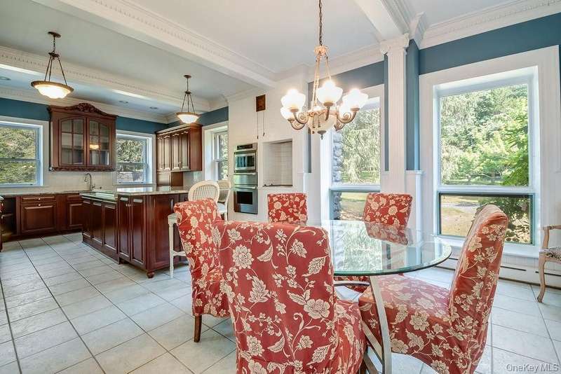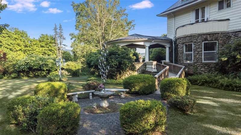 Evoking the charms of a more serene life, this Victorian center hall mansion, set on 5.7 glorious acres, is a study in paradise. The curved balustrade entry leads to a commanding multi column 100 foot veranda highlighted by a tongue & groove wood ceiling. Sit outside & enjoy the mountain view & parklike property. A highlight too is the copper cupola & new Davinci slate roof! Upon entering, timeless beauty matches impeccable luxury with the grand foyer, crowned by a stained glass window & fireplace. Pocket doors open to the dining room on one side & the living room on the other. The living room is highlighted by another fireplace (which has a dual opening to the outside patio) & a hexagon parlor. There's easy access to the patio too. The enchanting dining room, with special detailing & oak paneling, has a commanding fireplace. The butler's pantry is replete with cabinets & sink. The chef's eat in dream kitchen provides furniture quality cabinets, a Viking 6 burner cooktop, warming drawer, alcove grill & Subzero refrigerator. A powder room is conveniently located nearby. With easy access out & to the servants staircase, the charm continues. Take the sweeping staircase to the second floor, where multi bedrooms & baths cluster around a family room. The primary bedroom has glorious views & a marble bathroom with shower, tub with jets & dual sink as well as a huge walk in closet & private study (with gorgeous built in bookcases). Off the family room is a solarium with stunning views. The huge cellar has high ceilings, a Bilco door & young boiler. A second house on this property hosts a garage & lots of possibilities. This one of a kind Hudson Valley gem is truly amazing!