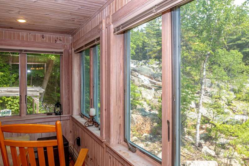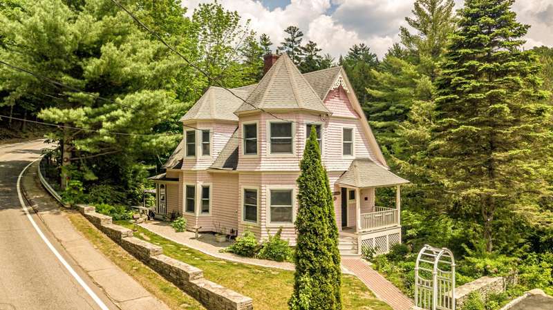 Join us in Jackson and be a part of this historic neighborhood. This 1900 vintage home overlooking the iconic Jackson Falls and known as Falls Cottage was built by the owners of the historic Wentworth Hall around 1900. Never look for a parking spot to enjoy Jackson Falls. Enjoy the direct view in all four seasons. Three fireplaces, 2 with gas log stoves, a screen porch, balcony and a patio with a pergola overlooking the falls. 2 Bedrooms, 2 baths, lovely intimate living spaces and architectural details. An office and the bonus of a sauna in the basement. Repainted interior, refinished floors, updated electrical. The flared shingles and decorative pent at the top of the gable are echoed in the other Wentworth buildings. (Yes, I had to Google pent!) The 2-story octagonal tower that faces the street creates a turret living room and bedroom. Jackson is a gem in the White Mountains of New Hampshire. With the best cross country skiing in the east and proximity to Wildcat, Attitash, Cranmore and its own Black Mountain Ski Area, Jackson has been a much beloved destination for over a century. With many choices of fine eateries in town and an abundance of other restaurants and shopping in nearby Glen and North Conway, you can enjoy the Jackson lifestyle. Vacation and enjoy all that the Mount Washington Valley has to offer or make it your forever home.