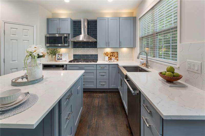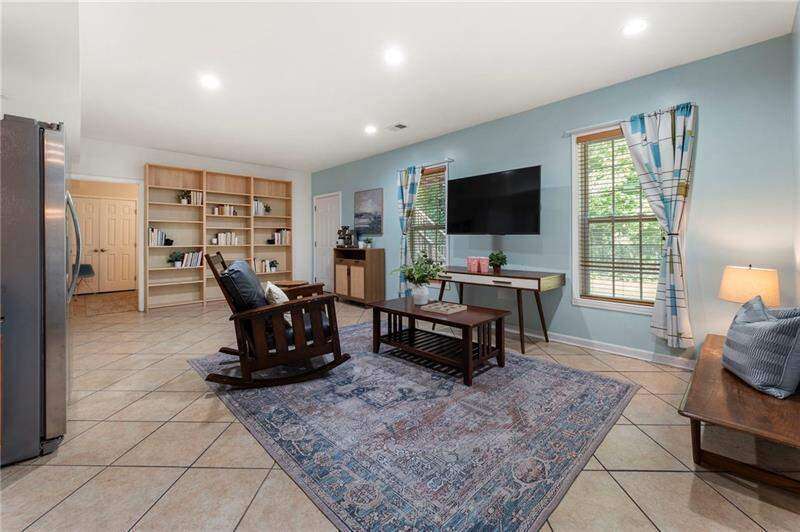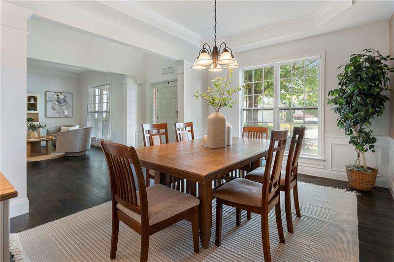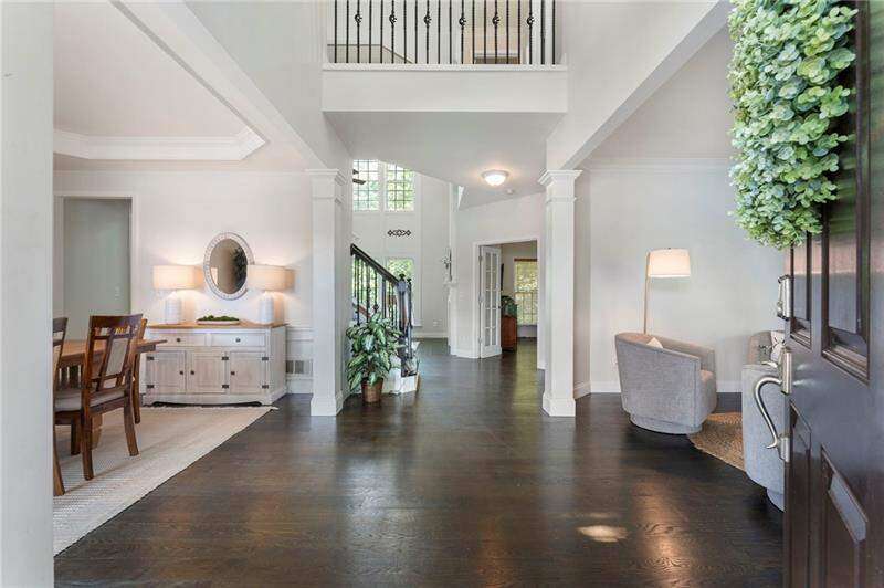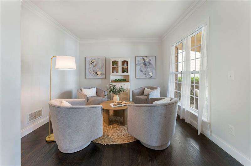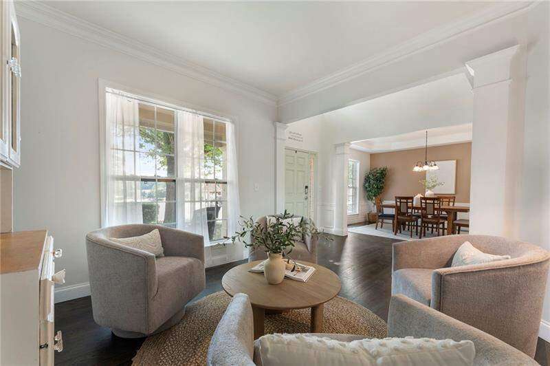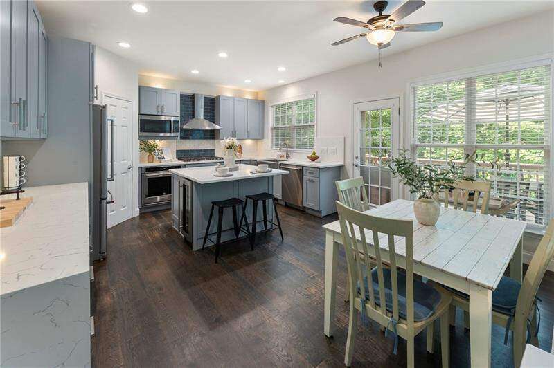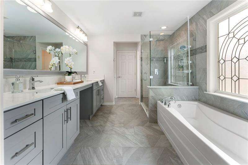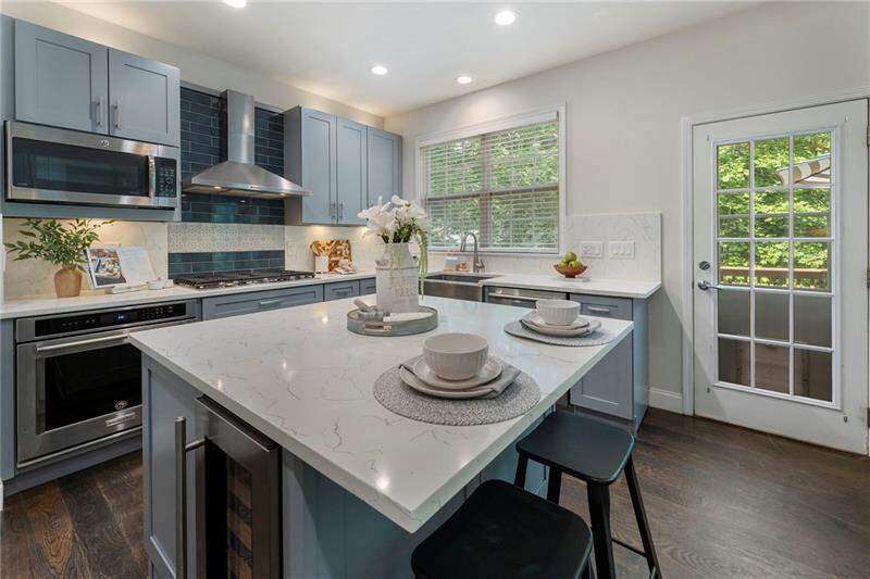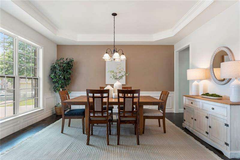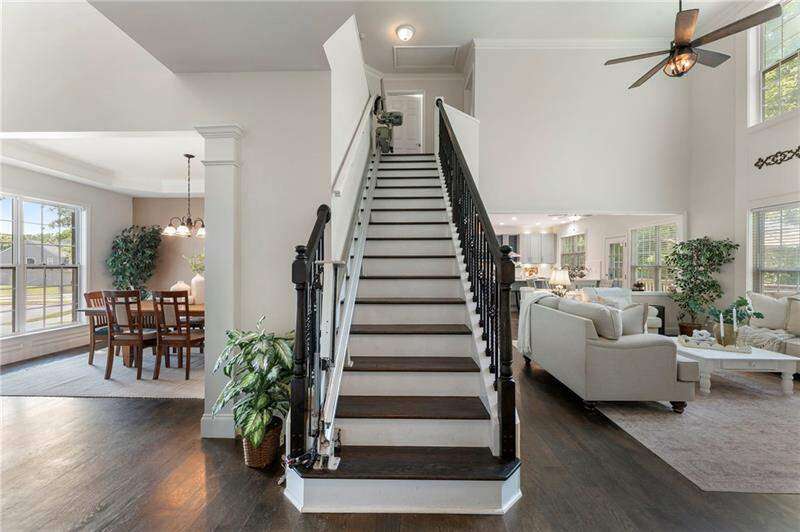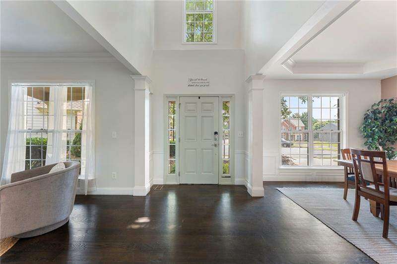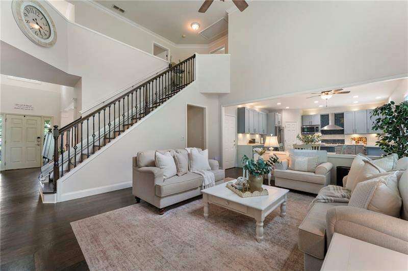 This stunning, six-bedroom, three-and-a-half bath gem in Avonley Creek has been updated to perfection and delivers the perfect blend of modern style and functional design. As you approach, a charming front porch sets the tone - ideal for morning coffee or evening chats. Step into the bright two-story foyer and discover a flowing open floor plan with bright, neutral paint and hardwood floors throughout the main level and extending into the upstairs hall and primary bedroom. The heart of the home is the fully renovated, entertainer's kitchen complete with soft gray cabinetry, quartz countertops and backsplash, a prep island with counter seating, stainless steel appliances (including a wine cooler), and a walk-in pantry. The sunny breakfast room opens to the two-story living room, where a cozy fireplace invites gatherings and a dramatic wall of windows frames peaceful wooded views. Step outside to soak up some natural beauty on the newly refinished deck-the perfect setting for alfresco dining, quiet mornings, or sunset cocktails overlooking the fenced backyard with raised garden beds. The main level also offers a spacious dining room and a versatile sitting room, as well as a dedicated office/playroom with French doors and a stylish powder room. A hardwood staircase with premium iron balusters leads to the upper level, where you'll find a tranquil primary suite with a trey ceiling and an oversized walk-in closet. The fully renovated, spa-inspired primary bath features dual vanities, a soaking tub, and an oversized frameless glass shower. Three generous secondary bedrooms, a hall bath, and a convenient upper-level laundry room complete this level. The fully finished daylight terrace level offers endless flexibility for living, entertaining or rental potential! With two expansive entertainment/living spaces, a kitchenette, two bedroom/flex spaces, a full bath, unfinished storage and a private exterior entrance, you can accommodate a crowd or create the ideal space for guests or multi-generational living. All this in a quiet cul-de-sac just steps from the community playground and pool-and only minutes to Gary Pirkle Park (5 min), Downtown Sugar Hill (5 min), and Lake Lanier/Buford Dam Park (8 min). Whether you're hosting a crowd or enjoying peaceful moments with family, this home delivers the space, style, and location you've been searching for.