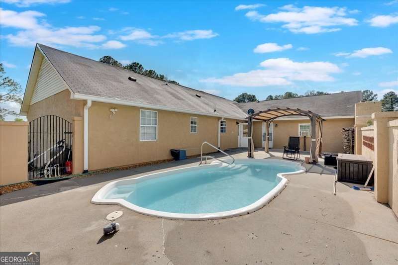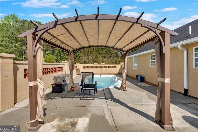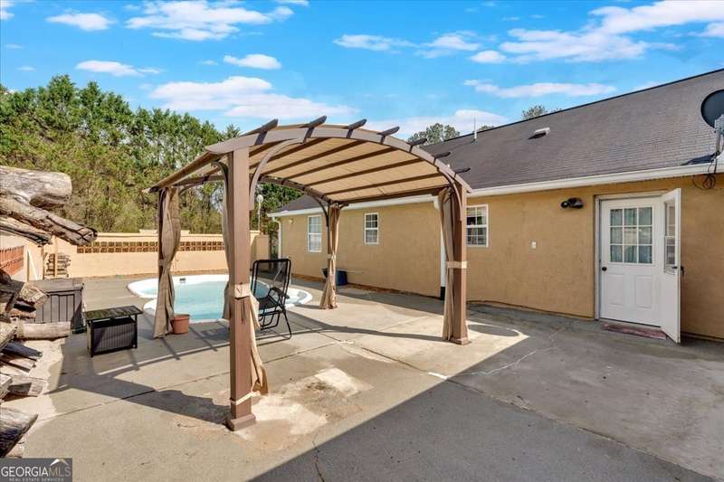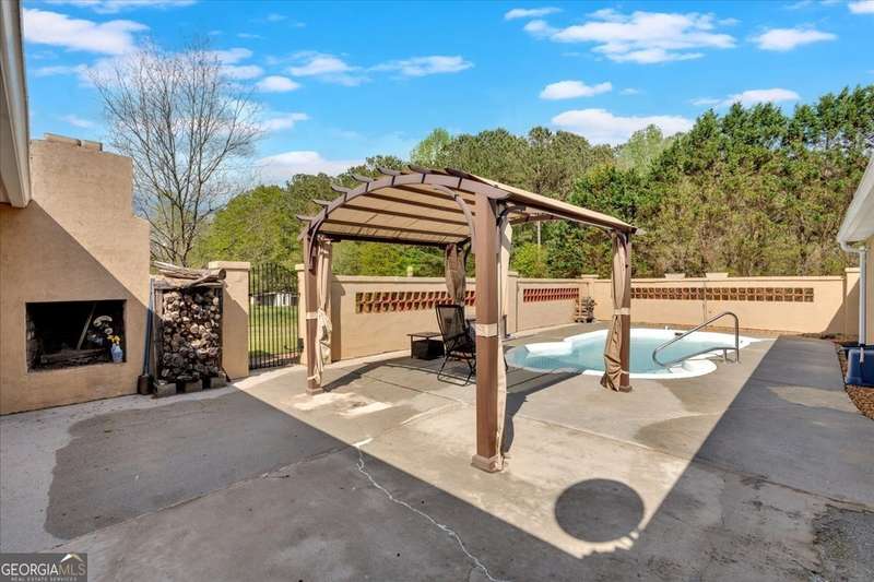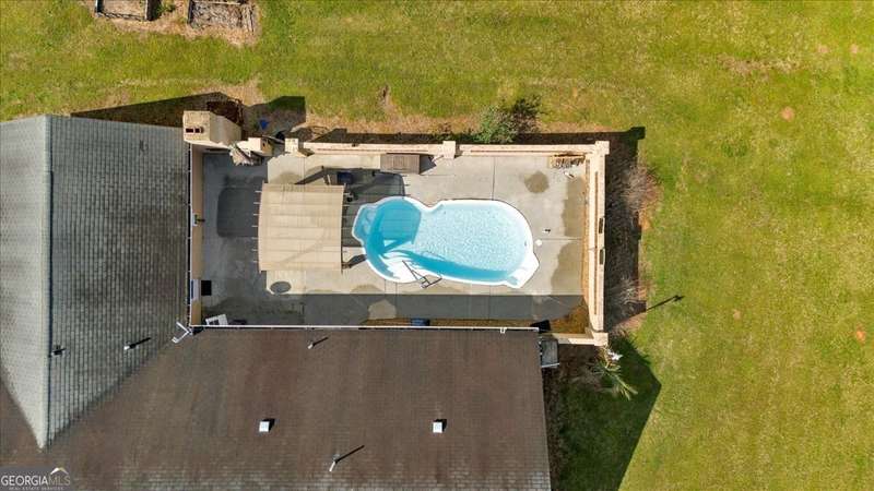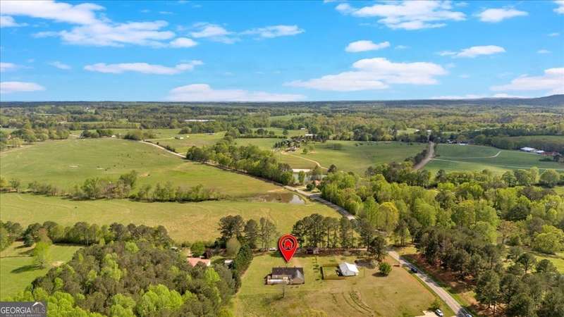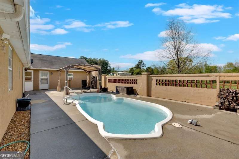 Feel like you are on vacation all the time in this beautiful home featuring an in ground pool right out the back door. The outdoor fireplace lets you sit around the pool from early Spring until late Fall. Inside the home features large living room with open kitchen at one end. Entertaining would be great as everyone including the cook could enjoy being together. Two bedrooms are on one side of the home. Third bedroom on other side of the home could be used as in-law suite or primary bedroom with it's own door to the pool patio. Lots of closets and storage all through the house. Two car garage attached to the home means you never scrape frost off your windshield again or get wet bringing groceries in. Quiet country setting just minutes south of Bowdon.