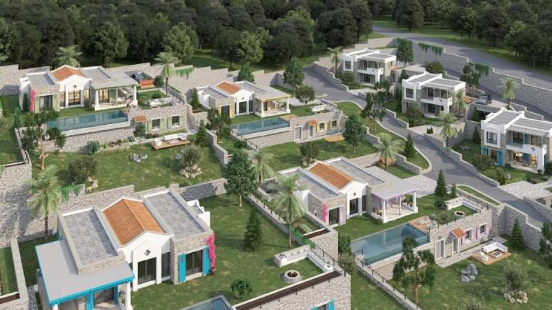 The stone-cladding apartments for sale in Bodrum Mugla are within walking distance to daily needs such as cafes, restaurants, and markets, 10 km to Yalikavak Marina, 19 km to Bodrum State Hospital, 22 km to Bodrum center, and 47 km to Milas Bodrum Airport.