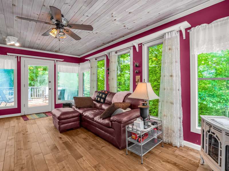 Welcome home to this serene, mountain retreat feel, 4-bedroom, 3-bathroom home, situated in a cul-de-sac within a desirable neighborhood. This home a blend of comfort, style and serene living, making it a must see for families and individuals alike. The living room features a wood-burning fireplace, ideal for relaxed evenings. The sunroom is a cozy retreat featuring gas logs, a perfect spot for morning coffee or an afternoon read. The home boasts two decks at the back, providing space for outdoor entertaining, barbecues and relaxation. The large front porch is perfect for sitting with a book or simply enjoying the peaceful, private setting. This home offers plenty of storage space throughout, ensuring all your a must-see! Schedule your showing today and discover all the wonderful features it has to offer. Don't miss on the opportunity to make this charming house your new home.