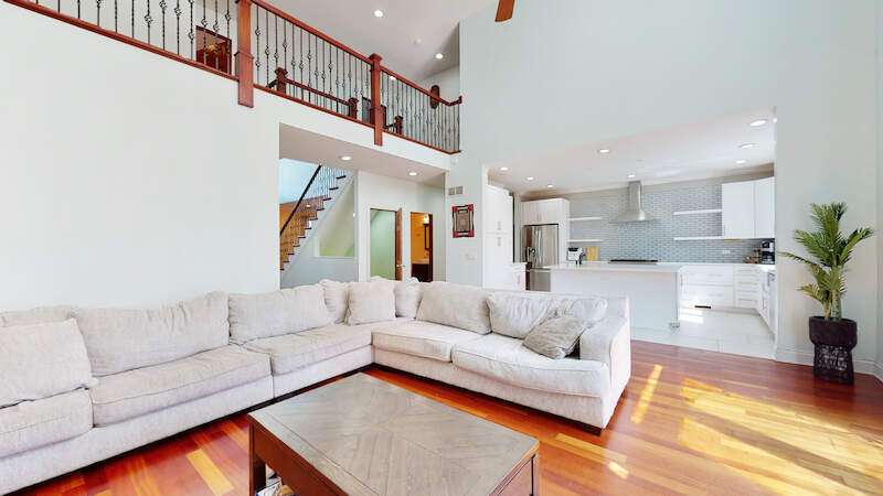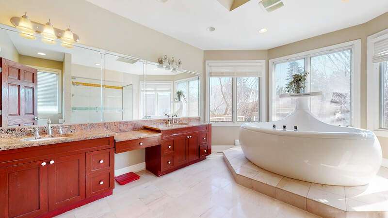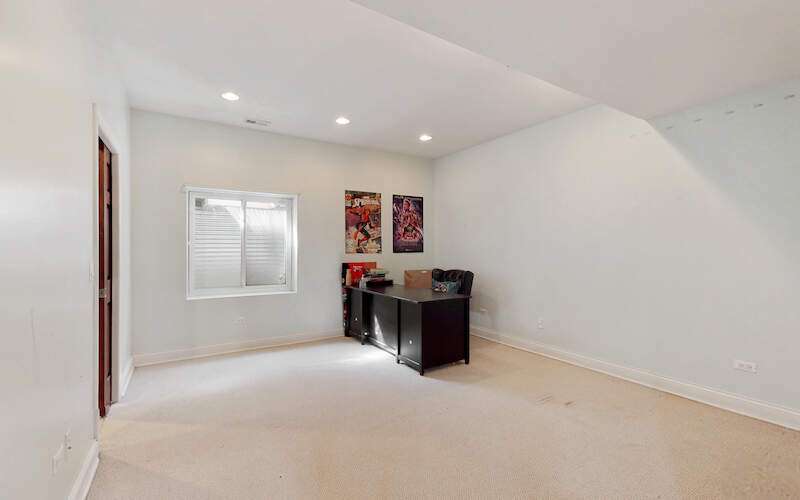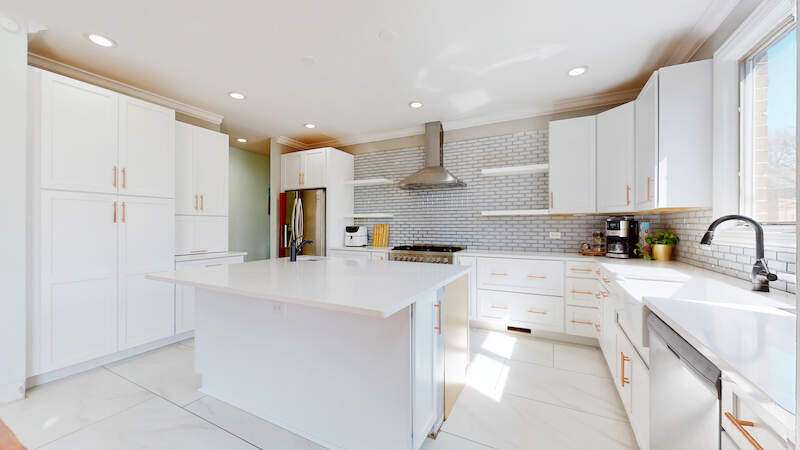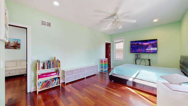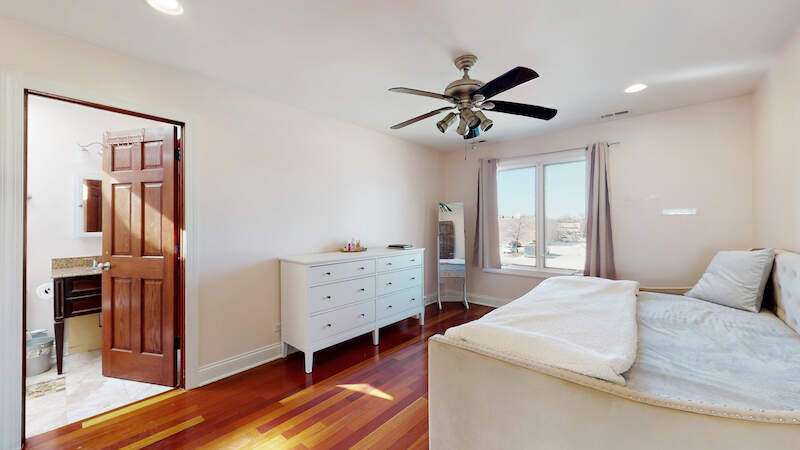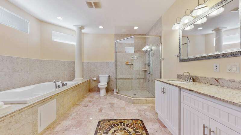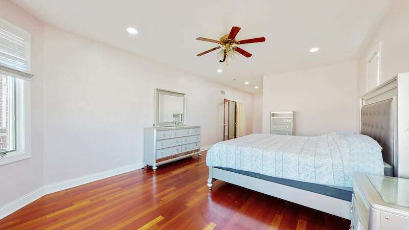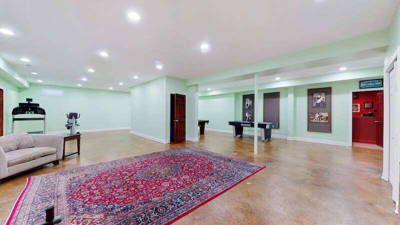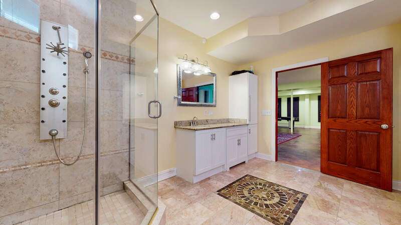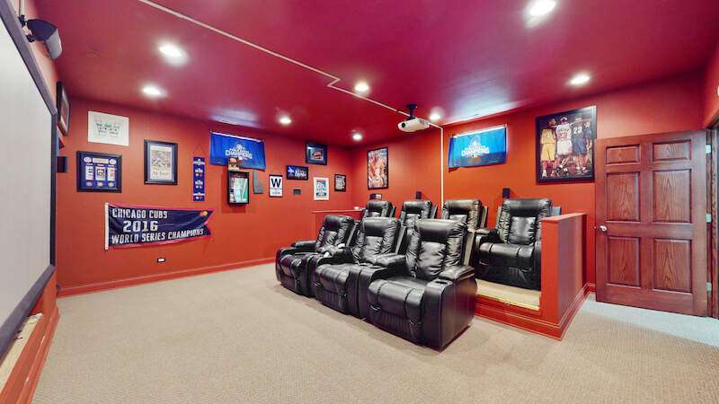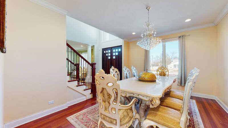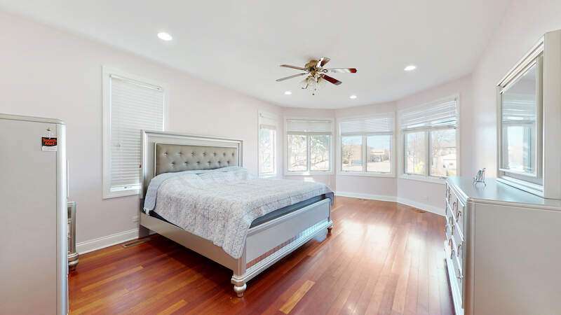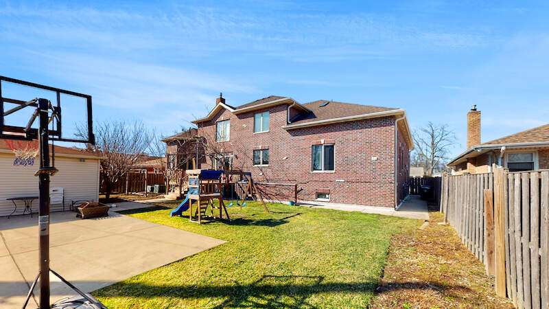 Welcome to this stately custom brick home, where timeless craftsmanship meets modern comfort. A dramatic two-story foyer with custom chandelier sets the impressive tone, opening to an exceptional floor plan designed for everyday living and effortless entertaining. The spacious living and dining rooms flow into a stunning family room featuring vaulted ceilings, a cozy gas fireplace, and direct access to the outdoor entertaining space. At the heart of the home is the chef's kitchen, complete with custom white cabinetry, quartz countertops, stainless steel appliances, a center island with breakfast bar, and a convenient butler's pantry. Perfect for hosting or enjoying a quiet morning coffee, this space is both beautiful and highly functional. The first-floor primary suite offers a luxurious private retreat with dual walk-in closets and a spa-inspired ensuite with double vanities, a soaking tub, and an oversized shower. A second main-level bedroom adds ideal flexibility for guests, a home office, or playroom. Upstairs, three generously sized bedrooms each offer their own updated ensuite bath, walk-in closet, and access to additional storage. The fully finished basement enhances your living space with a large recreation room, home theater, and a private bedroom with full bath-perfect for teens, in-laws, or long-term guests. Outside, enjoy an oversized lot complete with a patio and basketball court, plus a two-car attached garage and an additional detached two-car garage. Ideally located near top-rated schools, shopping, dining, and more, this exceptional home truly has it all.