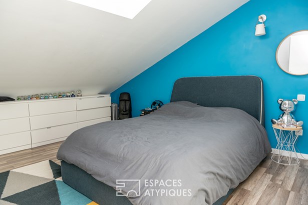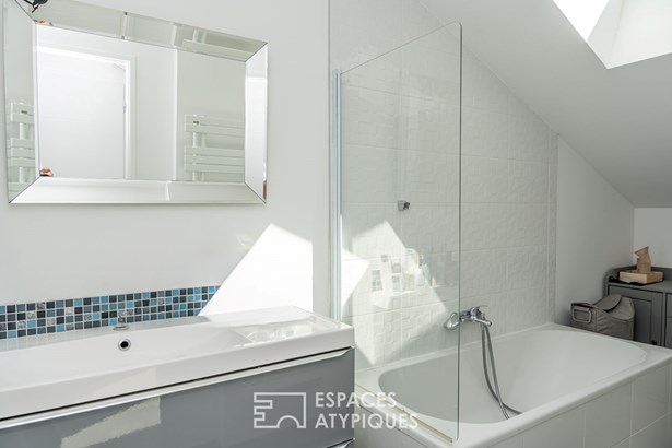 Upon entering, you will discover a living area of over 55 m2: a bright living room decorated with a bookcase, extended by a fitted kitchen with a dining area. The layout optimizes the space: the whole is pleasant, fluid, and functional?ideal for entertaining or simply enjoying family time. The upper floor houses the sleeping area, consisting of three bedrooms, including a master suite with a private shower room. A separate bathroom completes this level, designed for the comfort of children or guests.